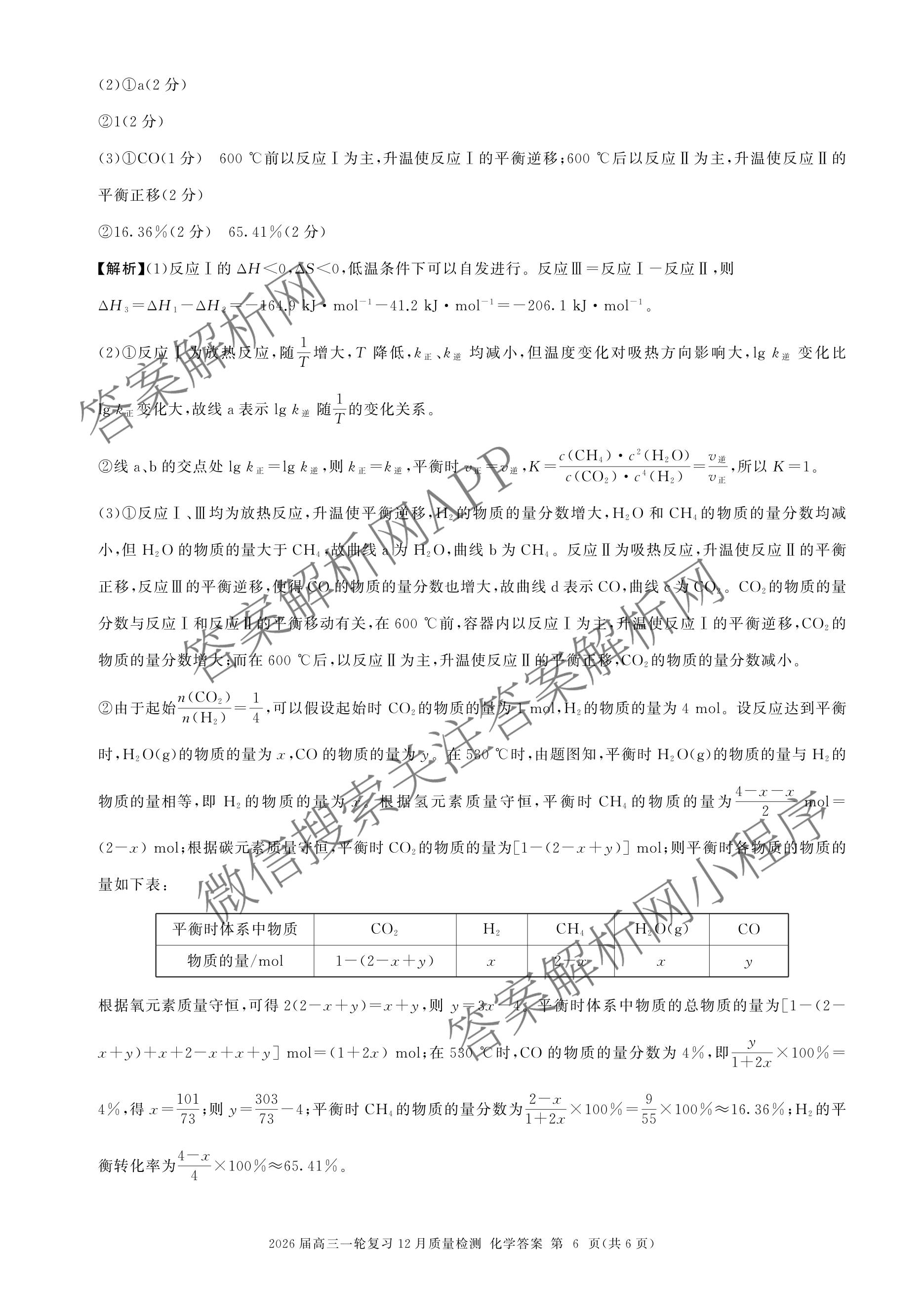 - (高三)(百师联盟)·2026届一轮复习12月质量检测(12.24)化学(百C)答案