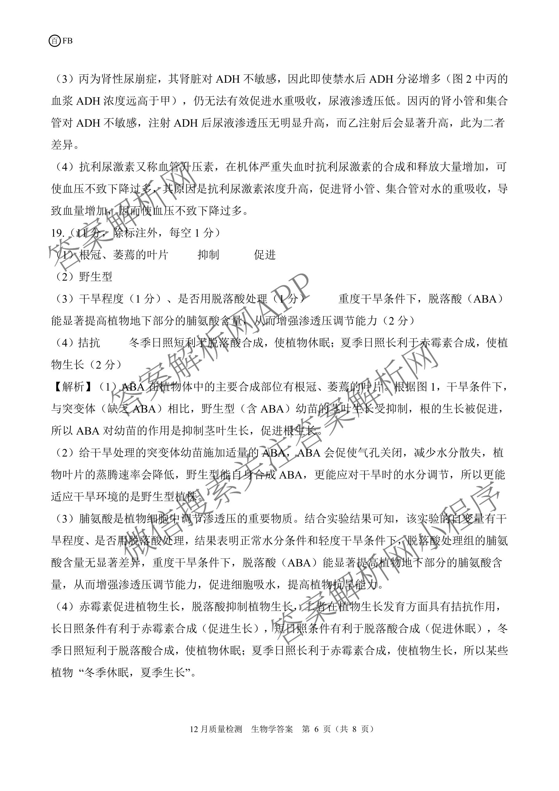 - [高三][百师联盟]2026届一轮复习12月质量检测(12.24)生物(百G)答案