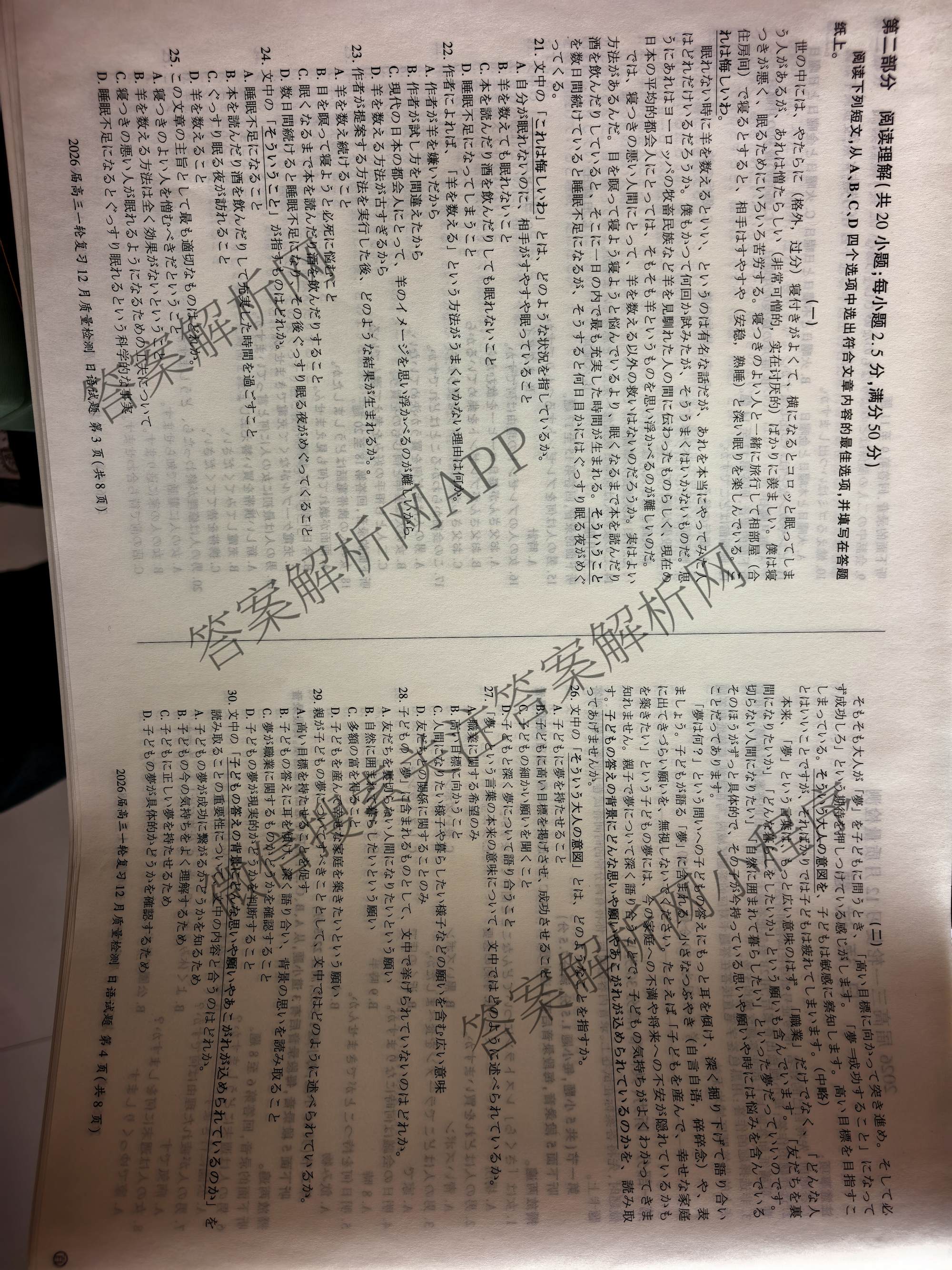 - [高三]百师联盟2026届一轮复习12月质量检测(12.24)日语(百)答案