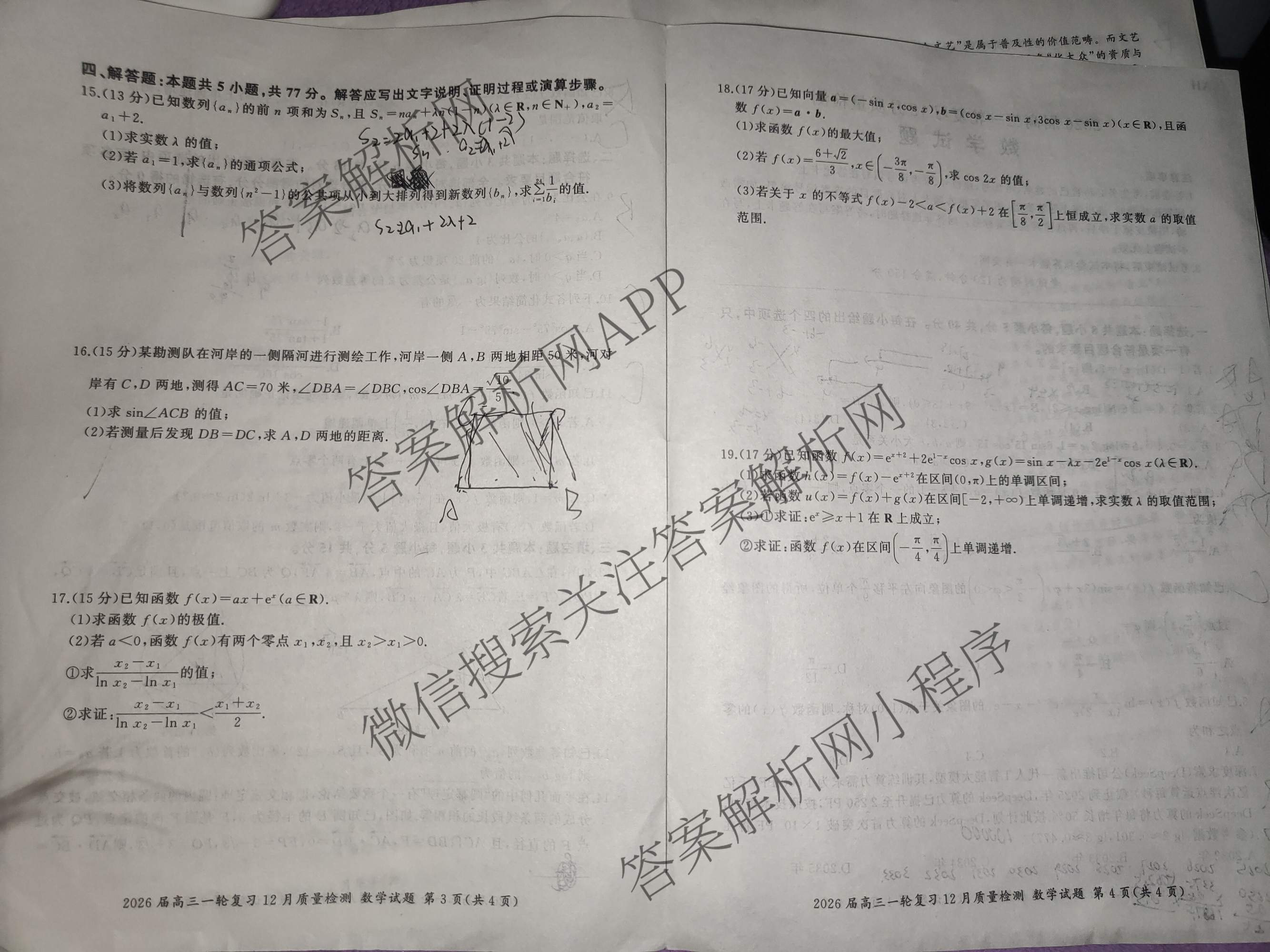 - [高三](百师联盟)·2026届一轮复习12月质量检测(12.24)数学(百A)答案
