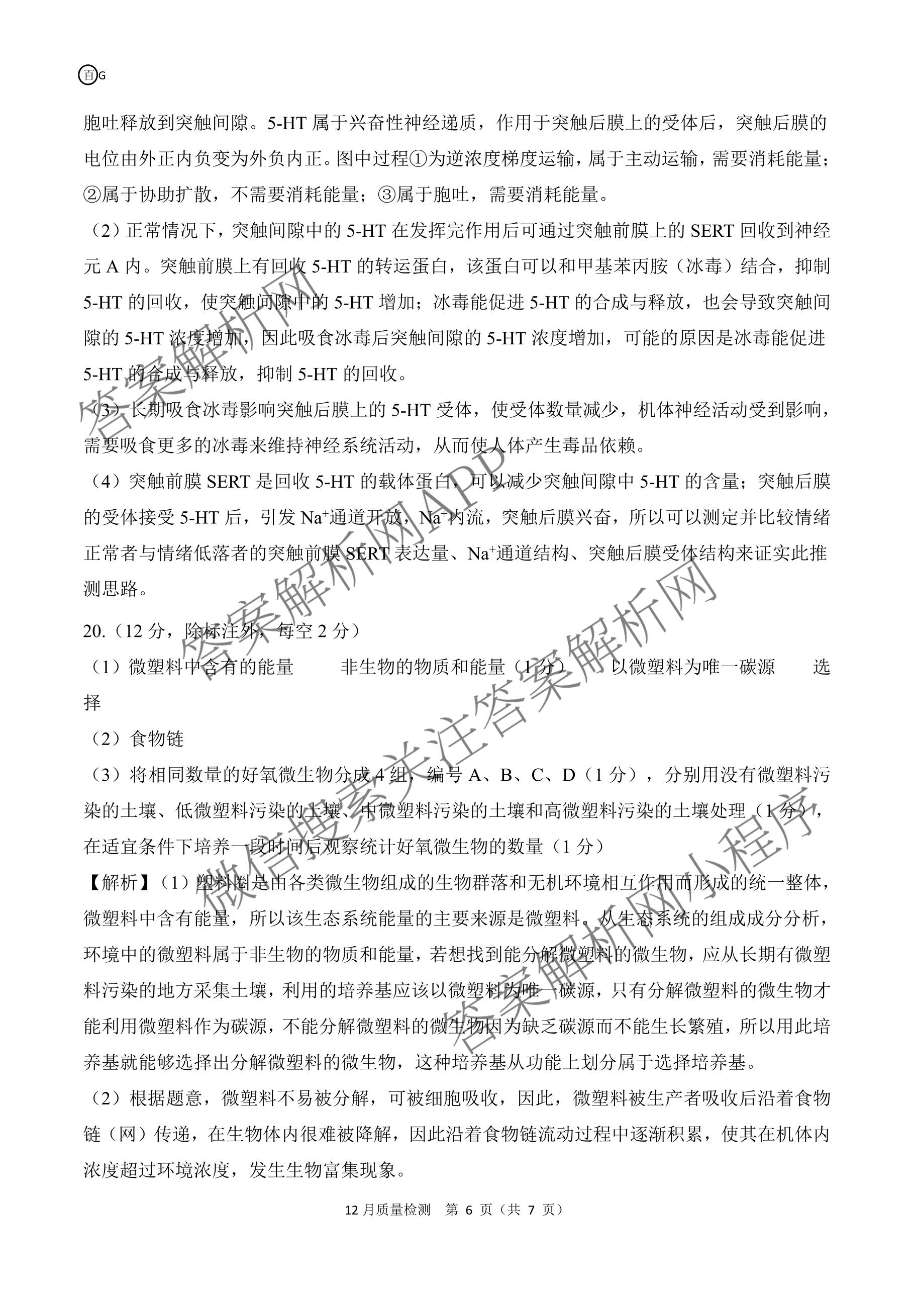 - [高三][百师联盟]2026届一轮复习12月质量检测(12.24)生物(百G)答案