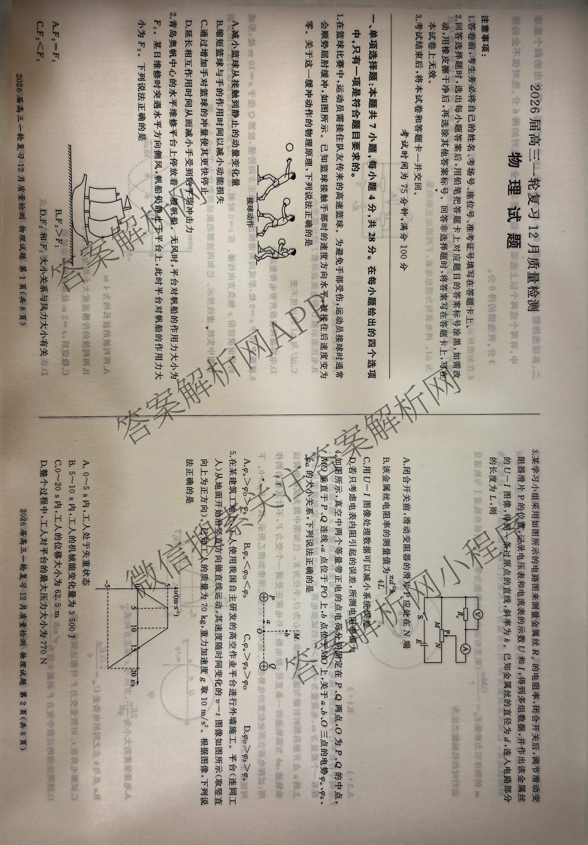 百师联盟·2026届高三一轮复习12月质量检测(12.24)物理(百H)试题,目前衡水金卷先享题答案网已经汇总了百师联盟·2026届高三一轮复习12月质量检测(12.24)物理(百H)试题的各科答案和试卷,获取更多百师联盟答案解析,请在关注本站。