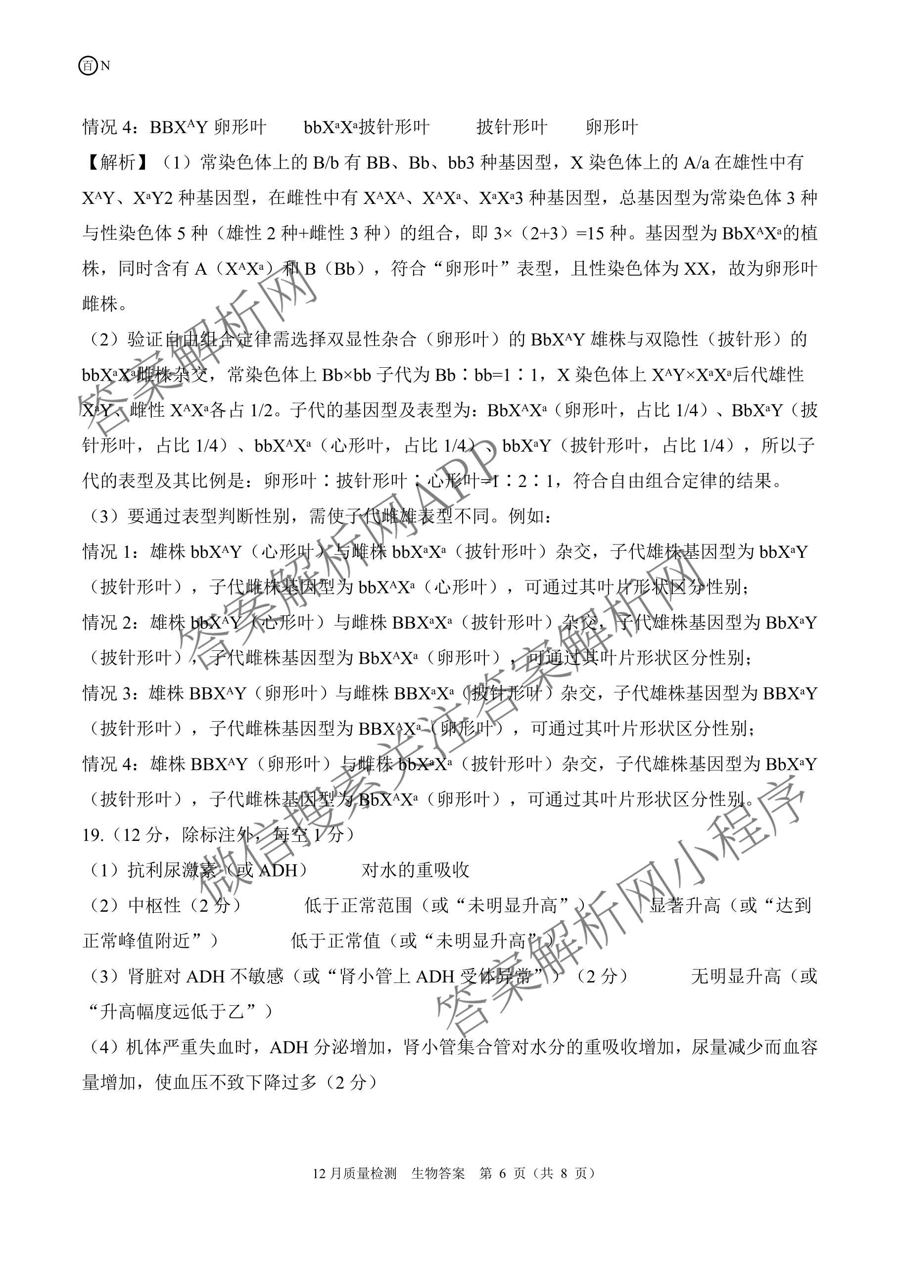 - 高三[百师联盟]2026届一轮复习12月质量检测(12.24)生物(百X)答案
