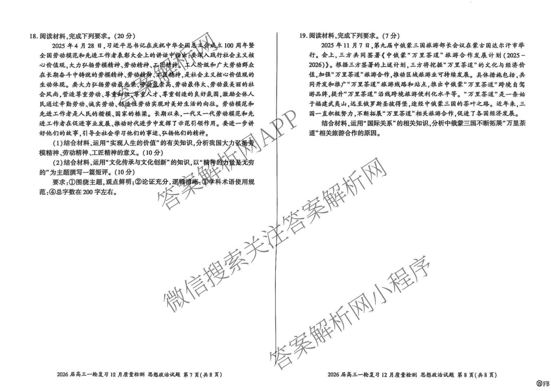 - [高三][百师联盟]2026届一轮复习12月质量检测(12.24)政治(百F)试题