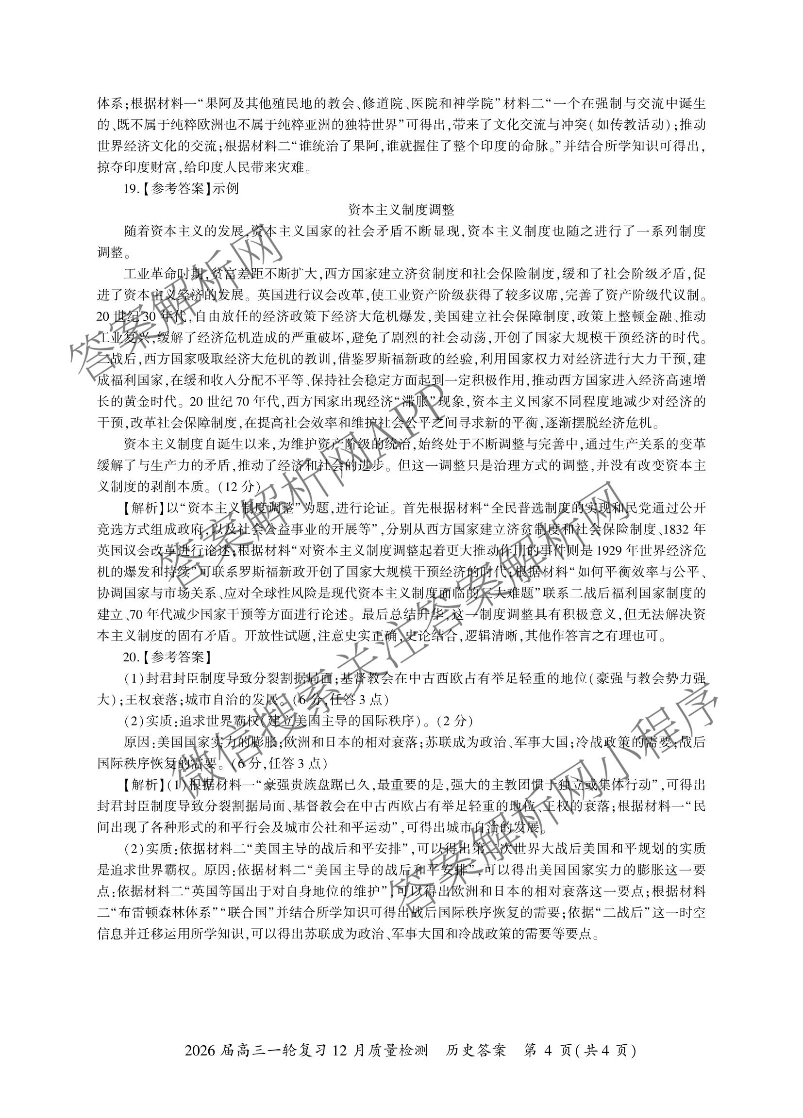 - (高三)(百师联盟)·2026届一轮复习12月质量检测(12.24)历史(百K)答案