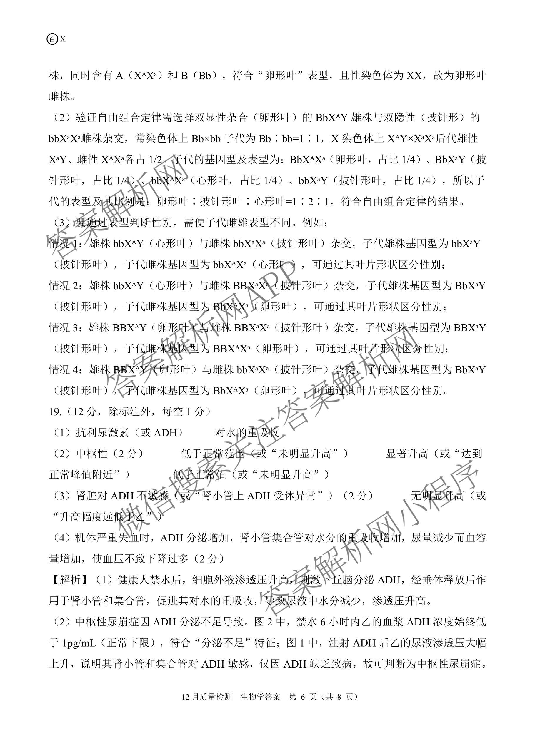 - 高三[百师联盟]2026届一轮复习12月质量检测(12.24)生物(百X)答案