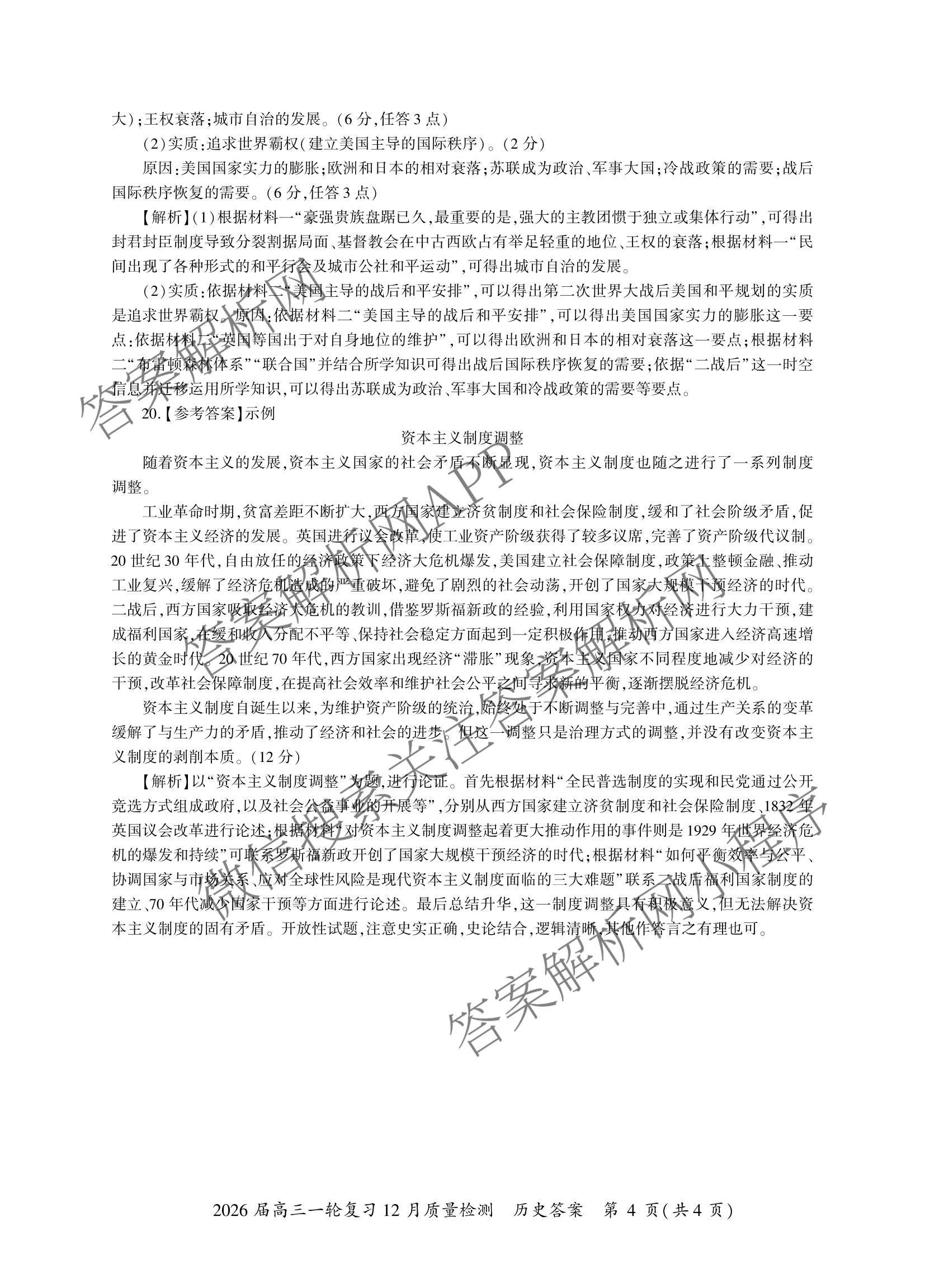 - [百师联盟]2026届[高三]一轮复习12月质量检测(12.24)历史(百A)答案