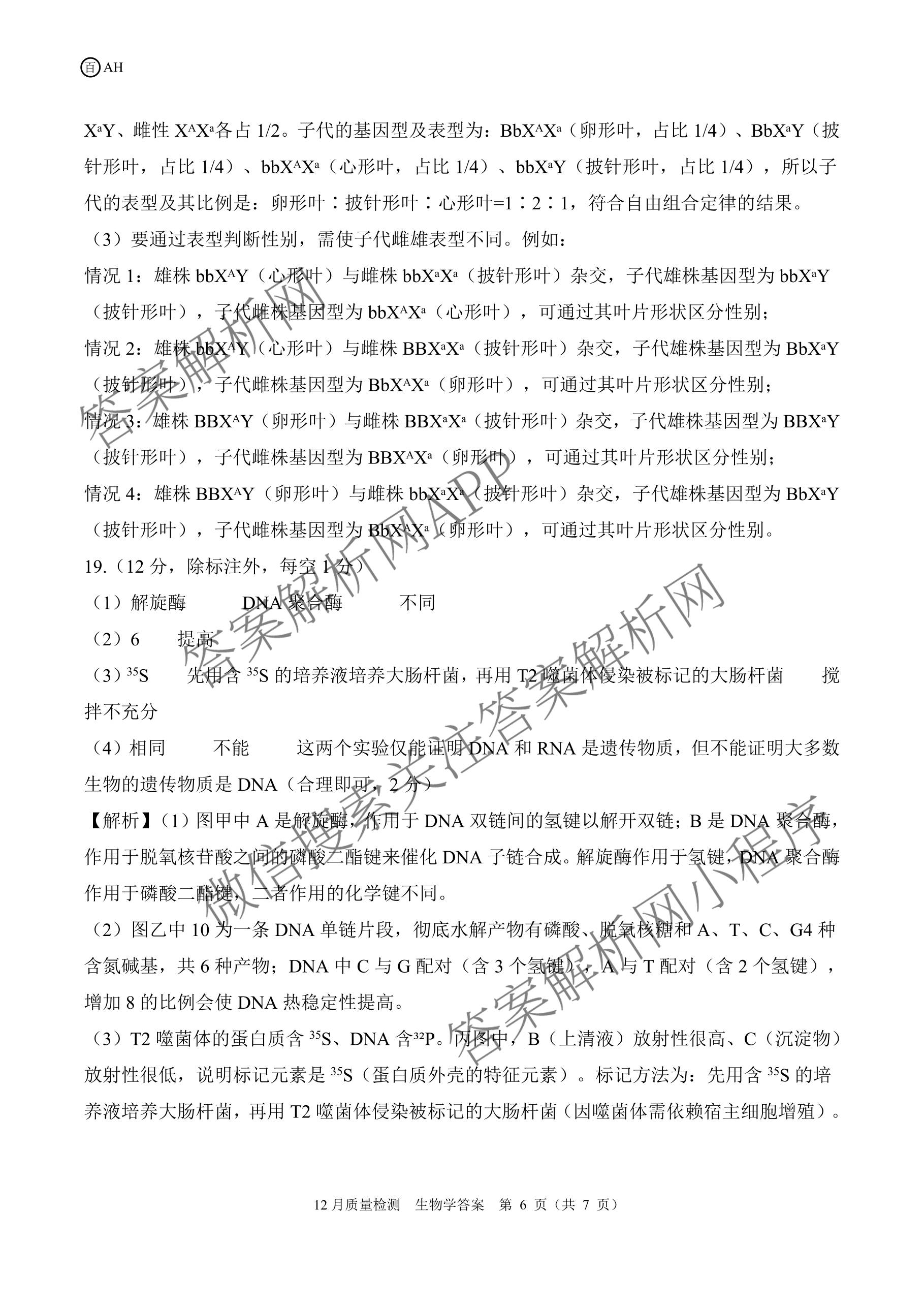 2026届(百师联盟)[高三]一轮复习12月质量检测(12.24)生物(百AH)答案