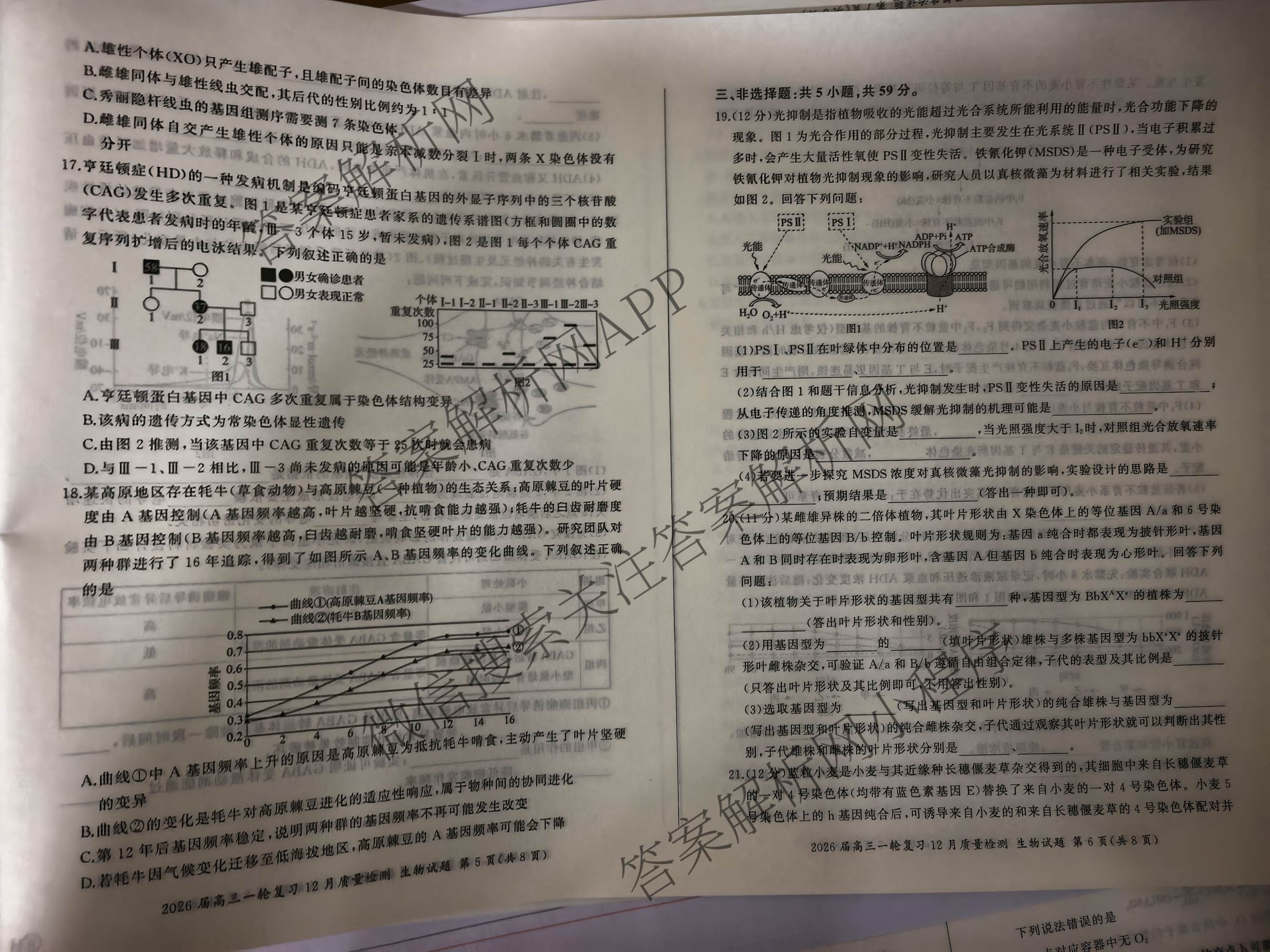 - (百师联盟)2026届[高三]一轮复习12月质量检测(12.24)生物(百H)试题