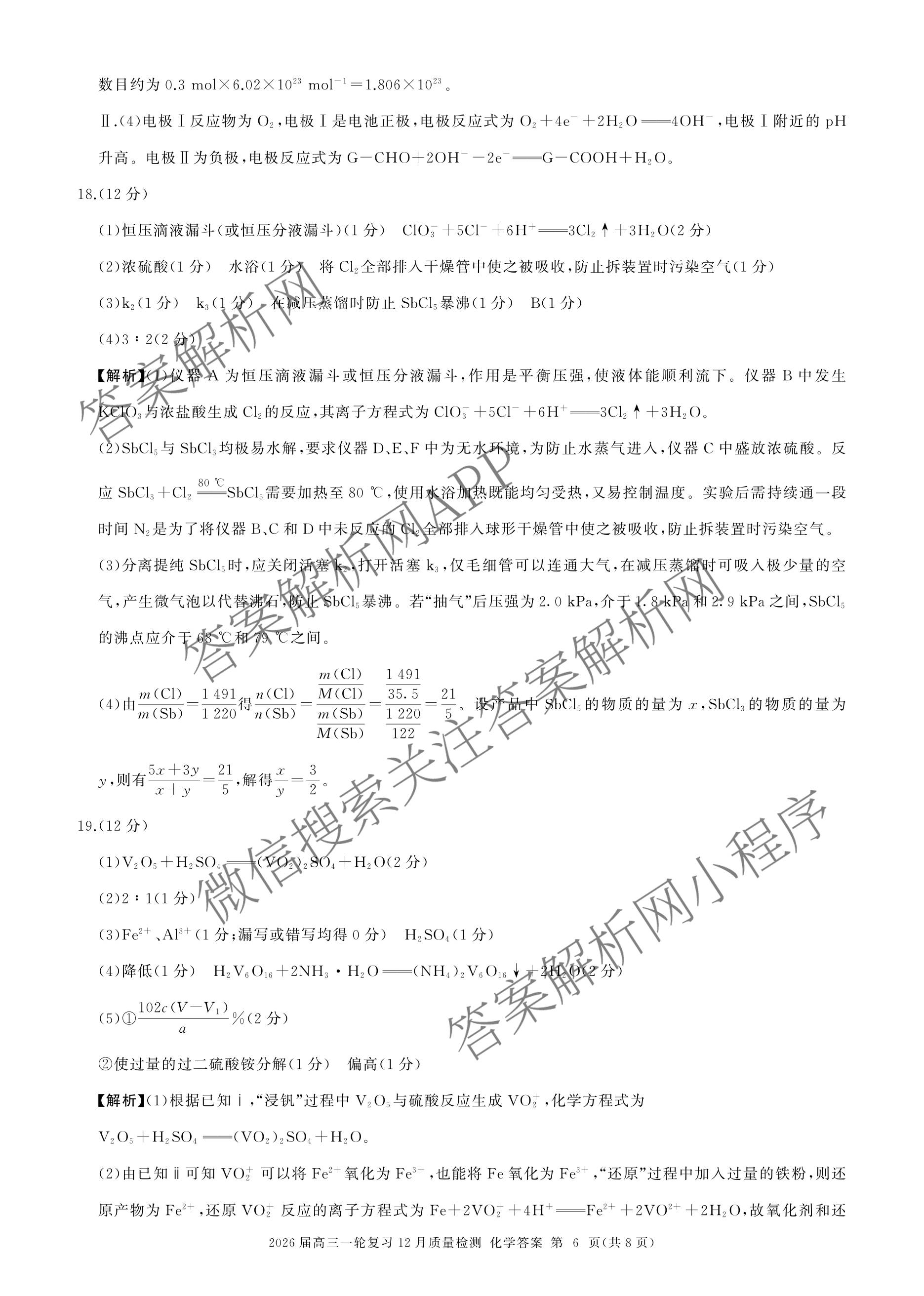- (高三)(百师联盟)·2026届一轮复习12月质量检测(12.24)化学(百C)答案