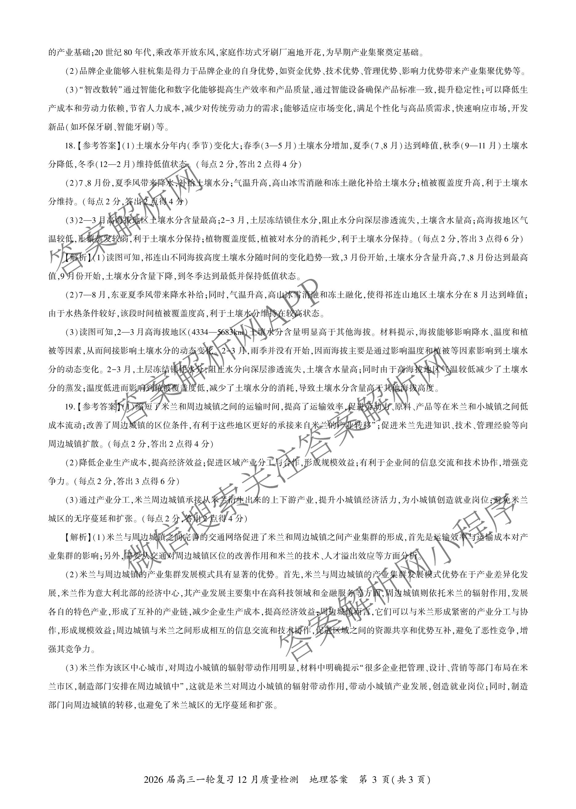 - 2026届[百师联盟](高三)一轮复习12月质量检测(12.24)地理(百AH)答案