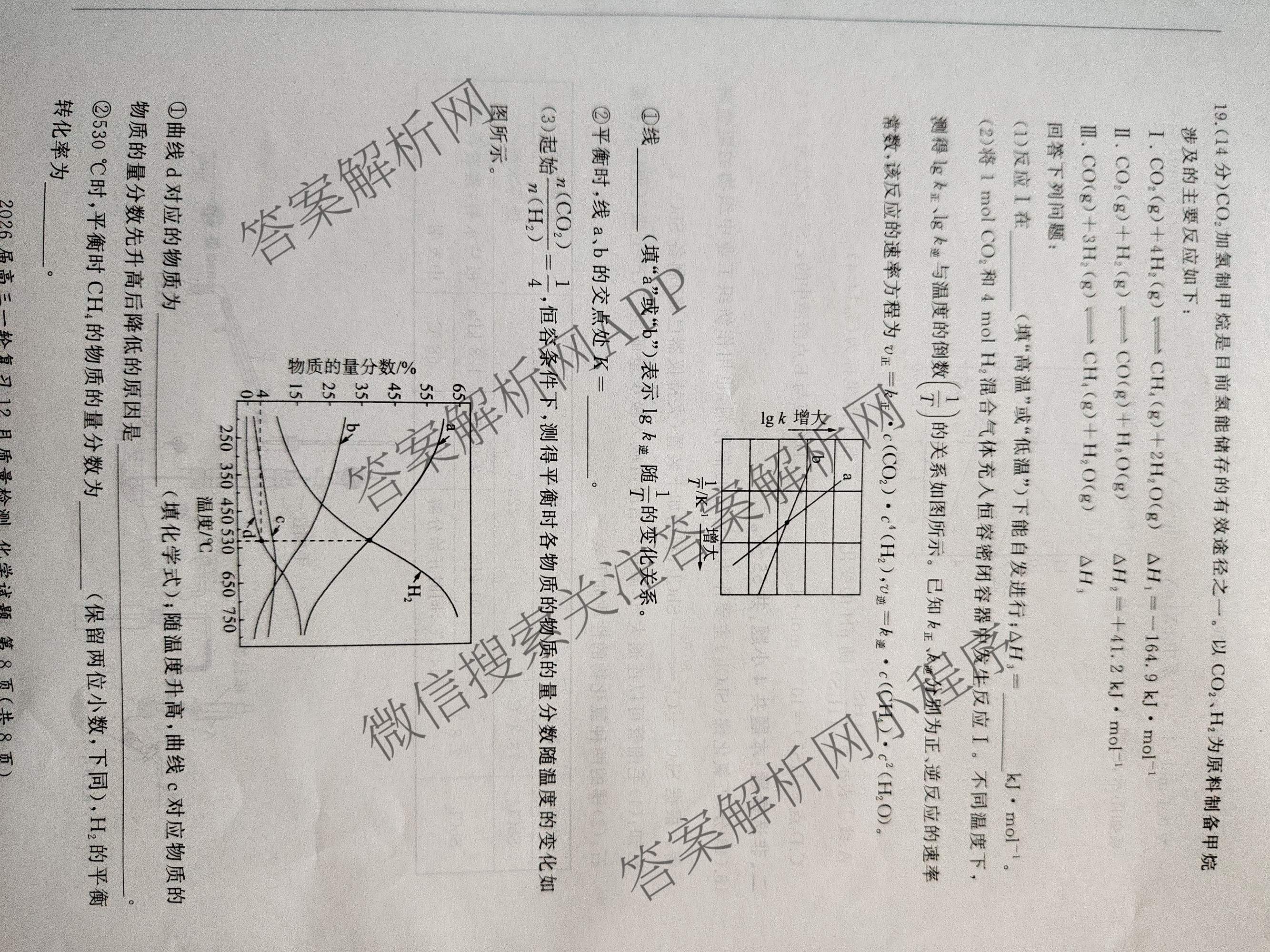 - [高三][百师联盟]·2026届一轮复习12月质量检测(12.24)化学(百S)答案
