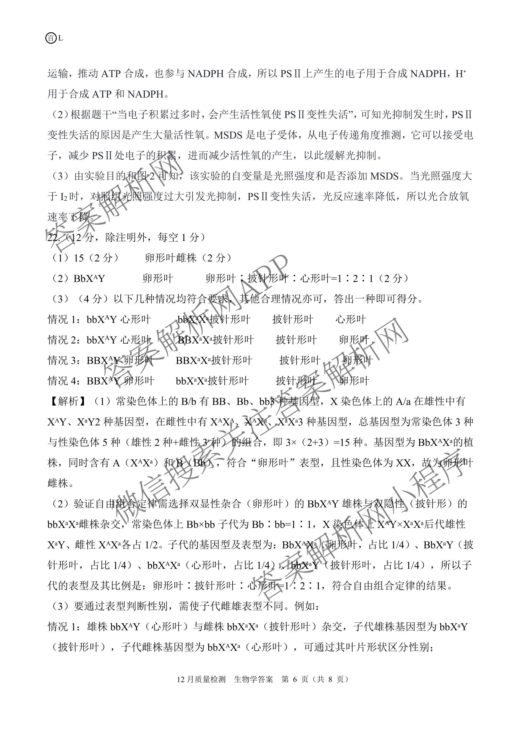 - 高三[百师联盟]2026届一轮复习12月质量检测(12.24)生物(百X)答案