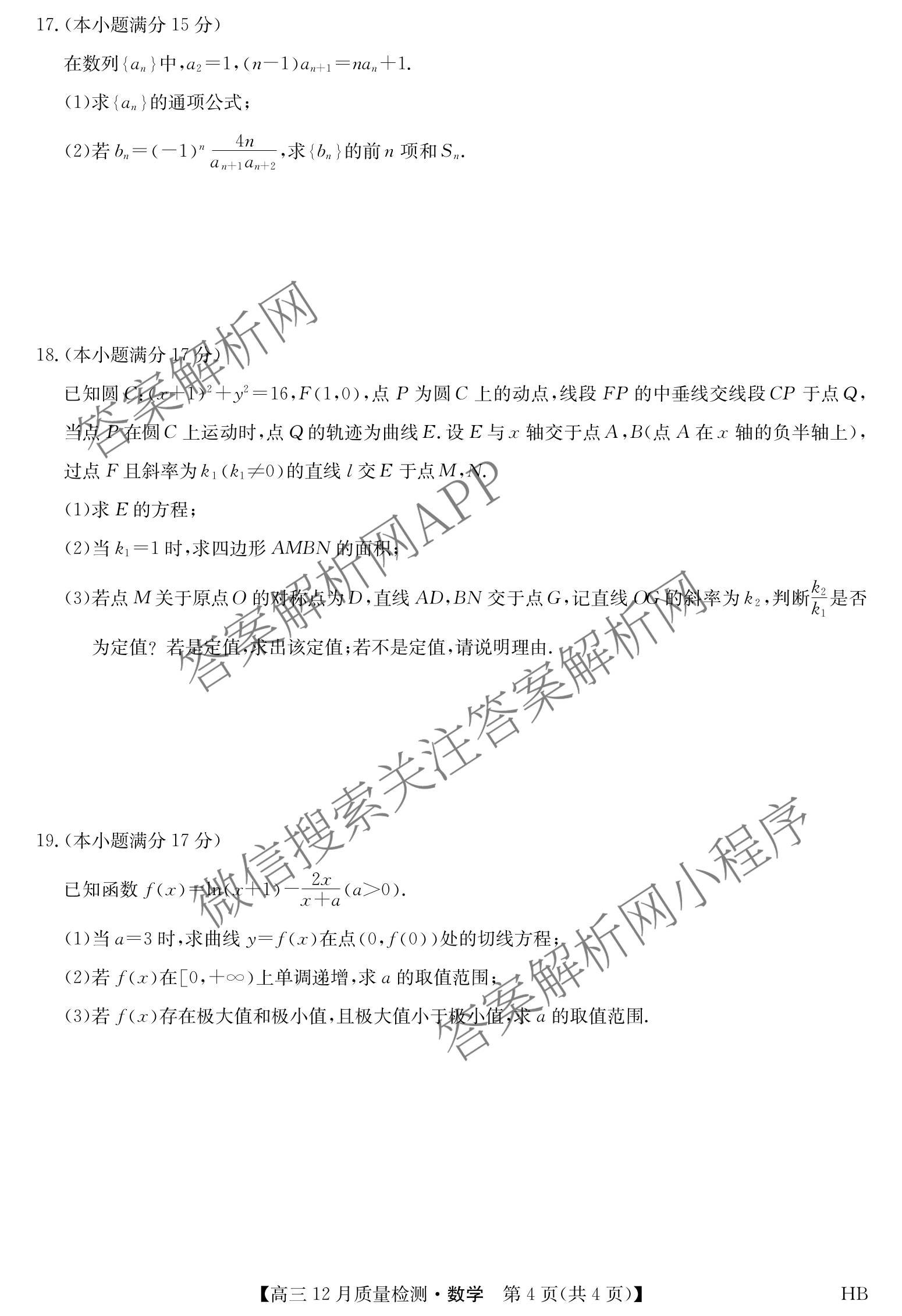 百师联盟·2026届高三一轮复习12月质量检测(12.24)数学(HB)试题,目前衡水金卷先享题答案网已经汇总了百师联盟·2026届高三一轮复习12月质量检测(12.24)数学(HB)试题的各科答案和试卷,获取更多百师联盟答案解析,请在关注本站。