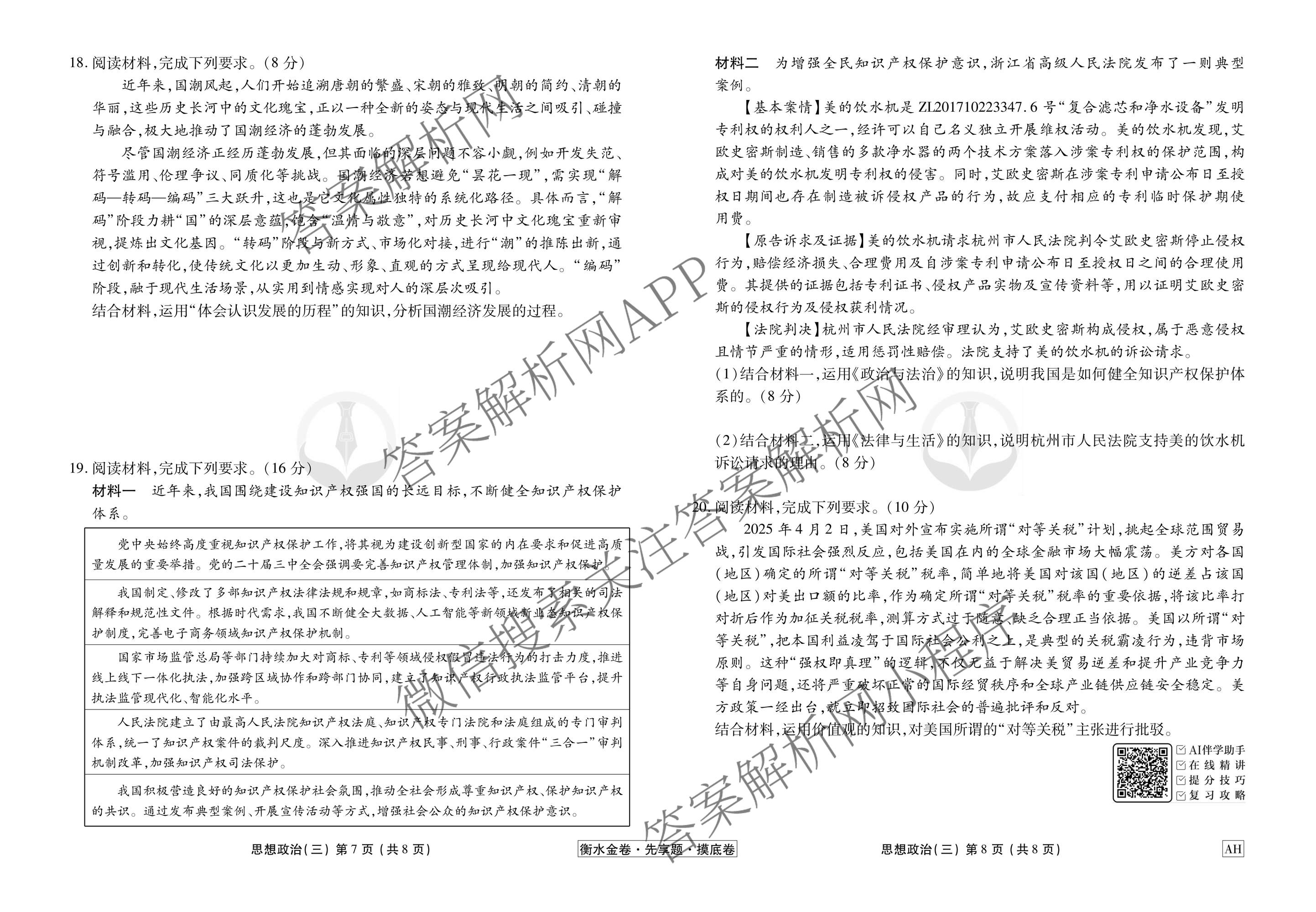 衡水金卷先享题·摸底卷2025-2026学年度高三一轮复习摸底测试卷(三)3政治(AH)试题,目前衡水金卷先享题答案网已经汇总了衡水金卷先享题·摸底卷2025-2026学年度高三一轮复习摸底测试卷(三)3政治(AH)试题的各科答案和试卷,获取更多衡水金卷先享题答案解析,请在关注本站。