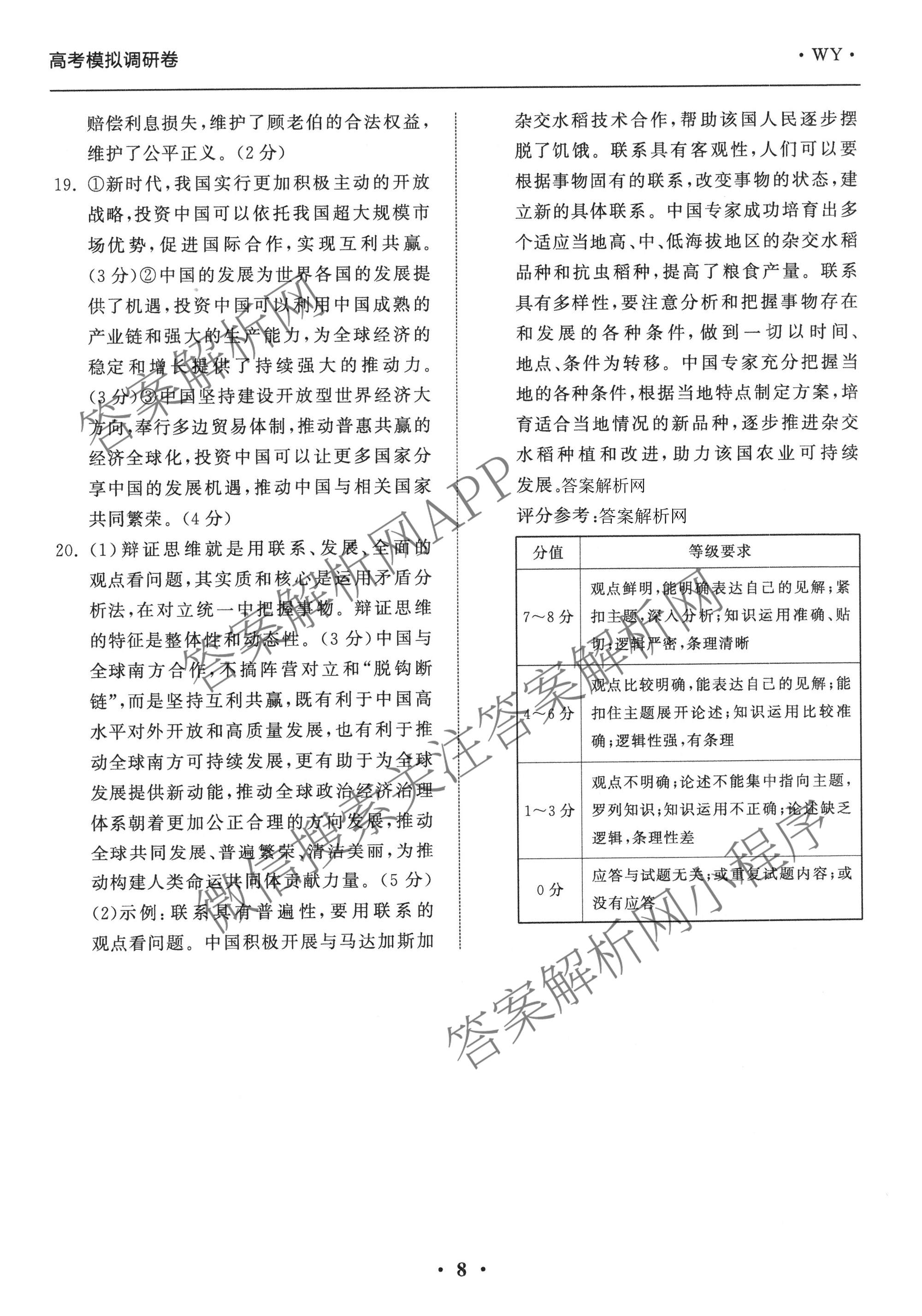 高三天舟高考(衡中同卷)·2026年普通高中学业水平选择性考试模拟调研卷(二)2政治(WY)答案