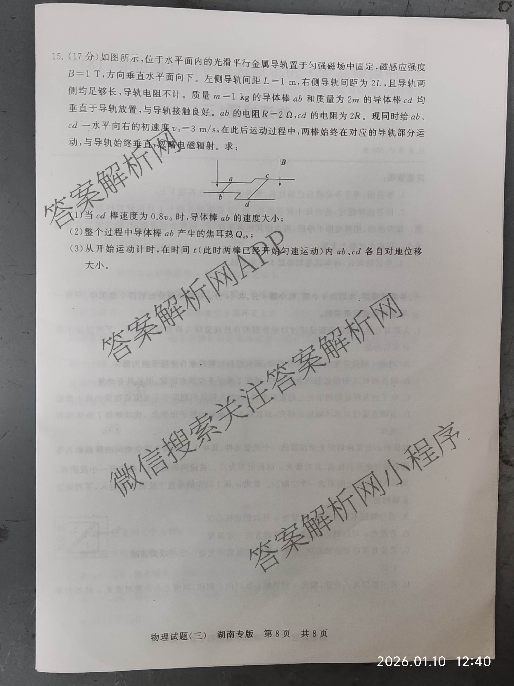 - 2026届(高三)冲刺新高考·选择考仿真模拟卷(T8)(三)3物理(湖南专版)答案