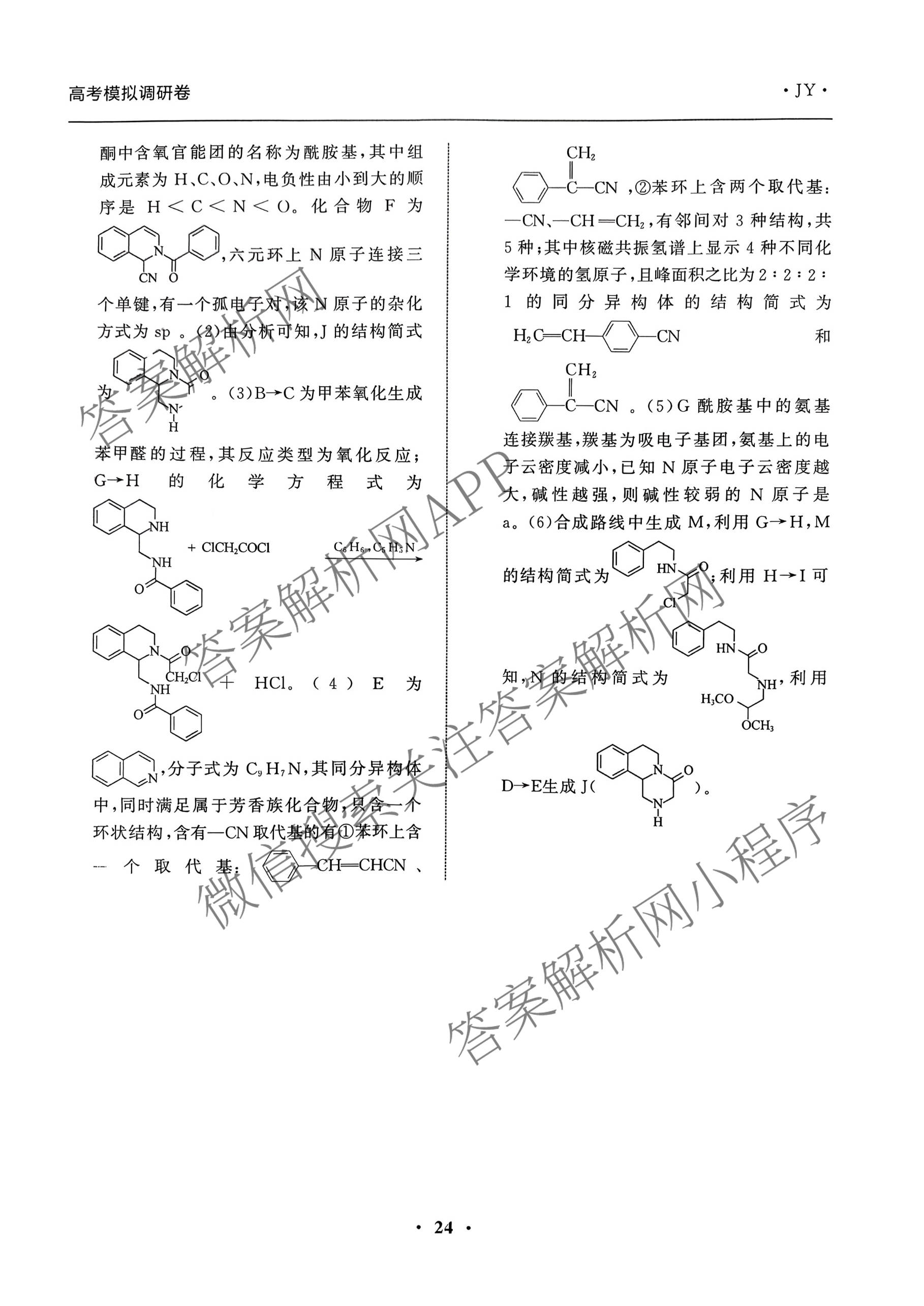 天舟高考衡中同卷2026年普通高中学业水平选择性考试模拟调研卷(四)4化学(JY)答案
