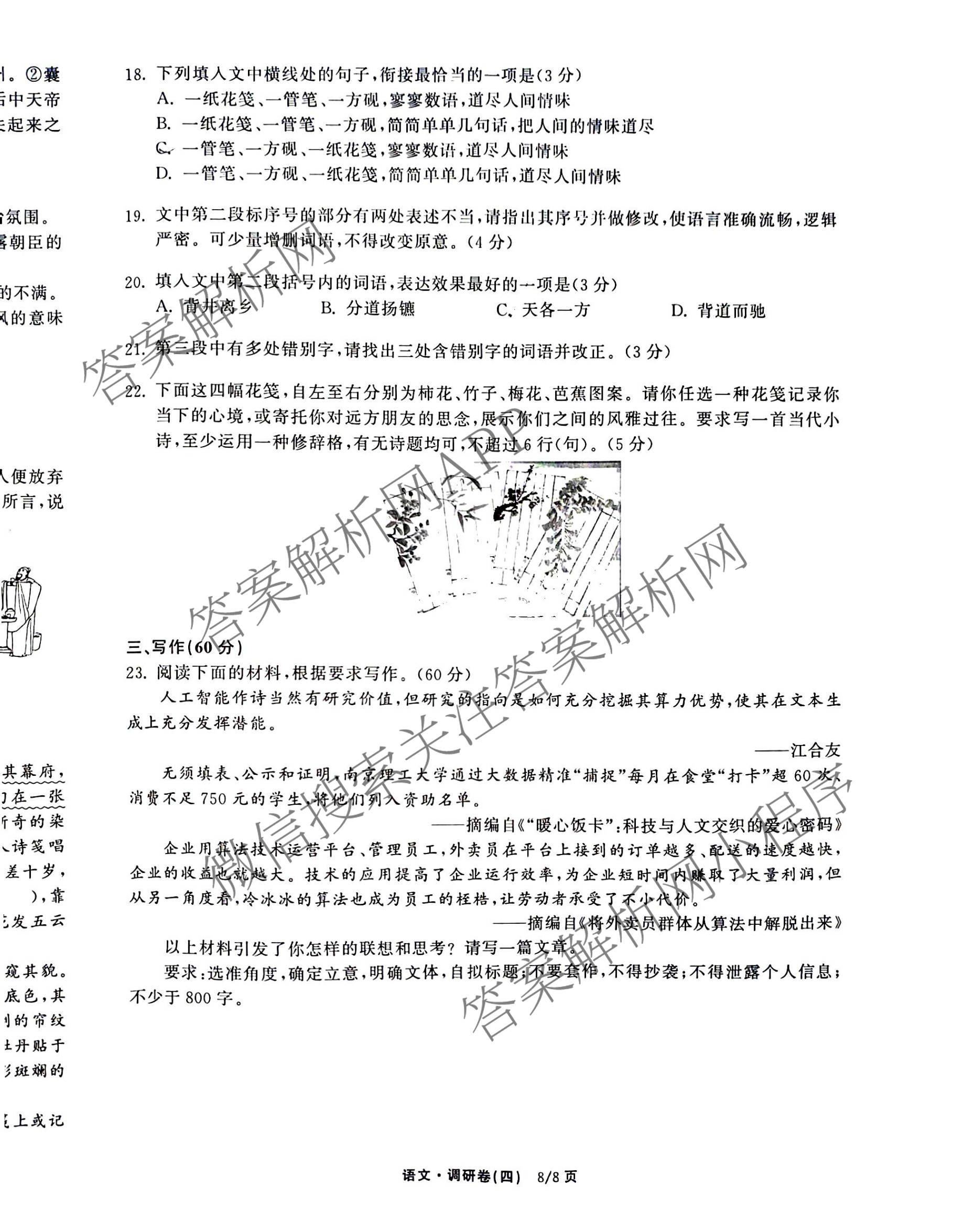 天舟高考衡中同卷·2026年普通高等学校招生全国统一考试模拟调研卷(四)4语文(无字母)试题,目前衡水金卷先享题答案网已经汇总了天舟高考衡中同卷·2026年普通高等学校招生全国统一考试模拟调研卷(四)4语文(无字母)试题的各科答案和试卷,获取更多衡中同卷答案解析,请在关注本站。