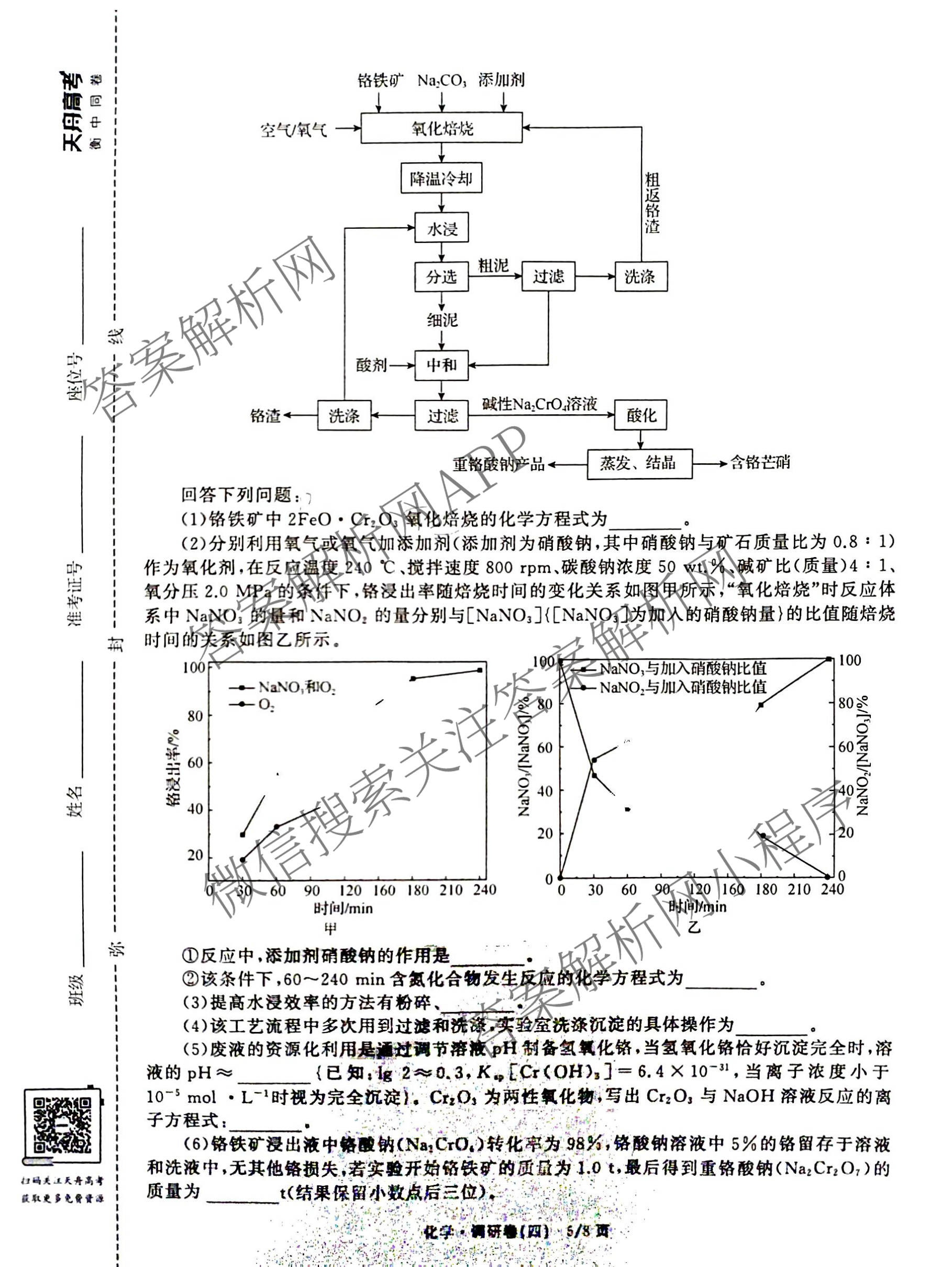 - 天舟高考(衡中同卷)·2026年普通高中学业水平选择性考试模拟调研卷(四)4化学试题