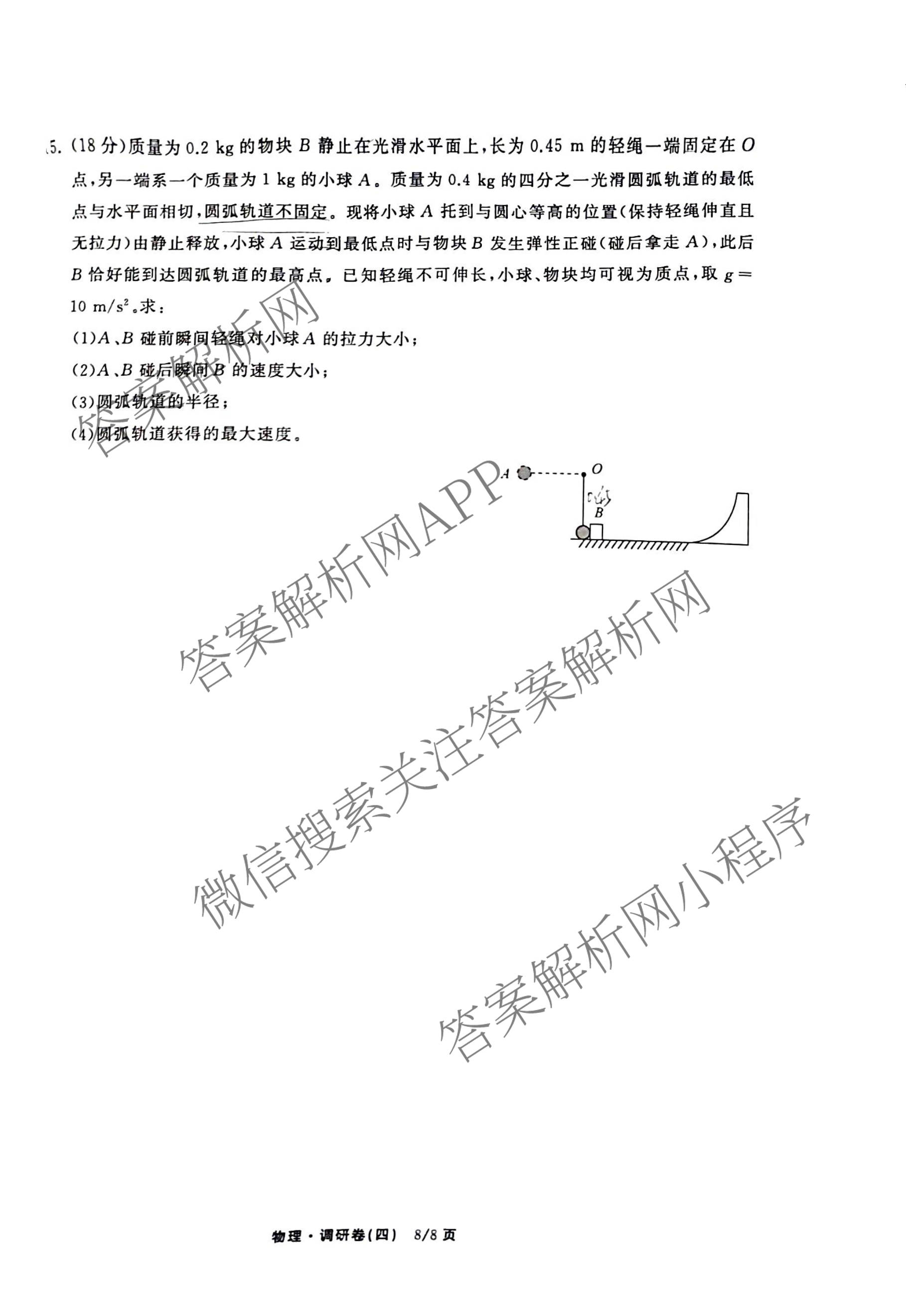 - 天舟高考(衡中同卷)2026年普通高中学业水平选择性考试模拟调研卷(四)4物理(安徽版)答案