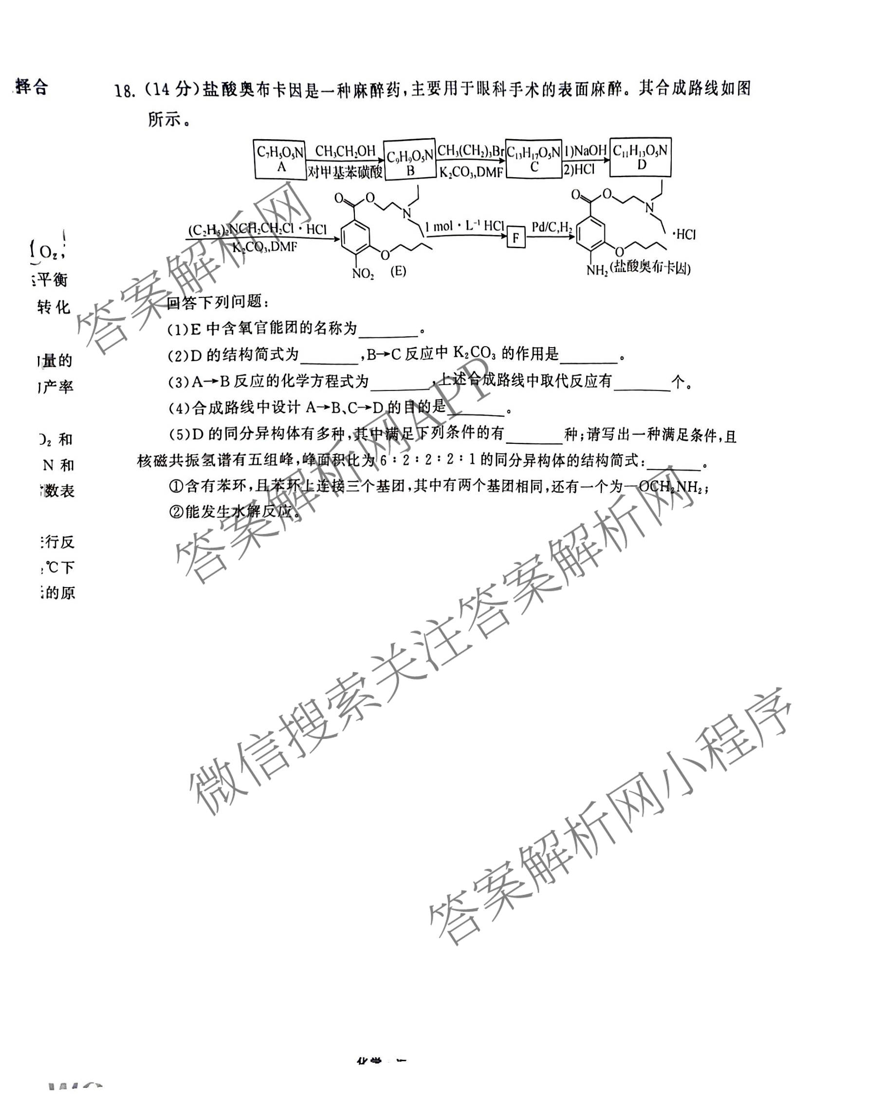 天舟高考衡中同卷·2026年普通高中学业水平选择性考试模拟调研卷(五)5化学(WG)试题,目前衡水金卷先享题答案网已经汇总了天舟高考衡中同卷·2026年普通高中学业水平选择性考试模拟调研卷(五)5化学(WG)试题的各科答案和试卷,获取更多衡中同卷答案解析,请在关注本站。