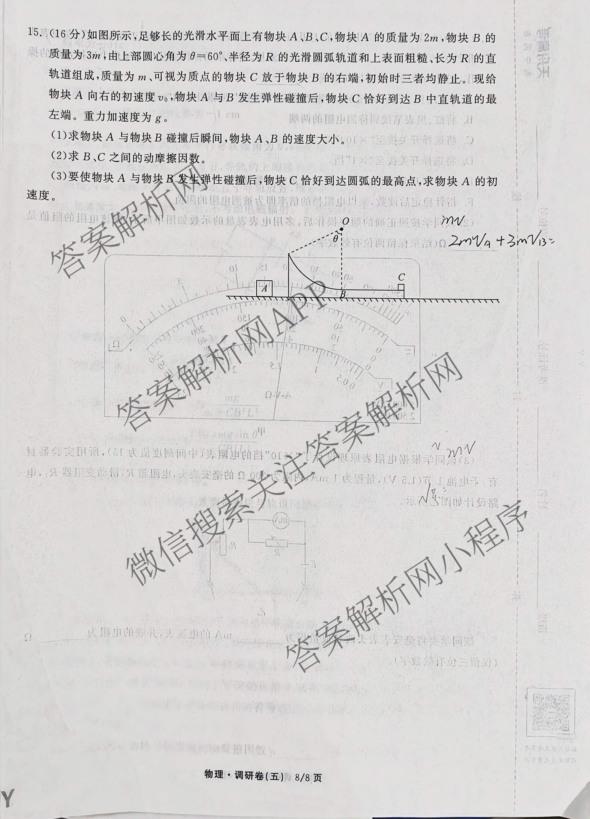 - [高三]天舟高考[衡中同卷]·2026年普通高中学业水平选择性考试模拟调研卷(五)5物理(山东版)答案