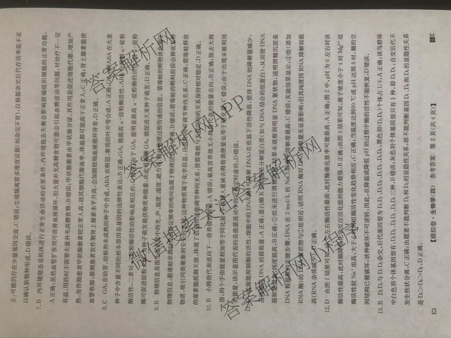 - [高三]2026年普通高中学业水平选择性考试仿真模拟卷(四)4生物(E2)答案