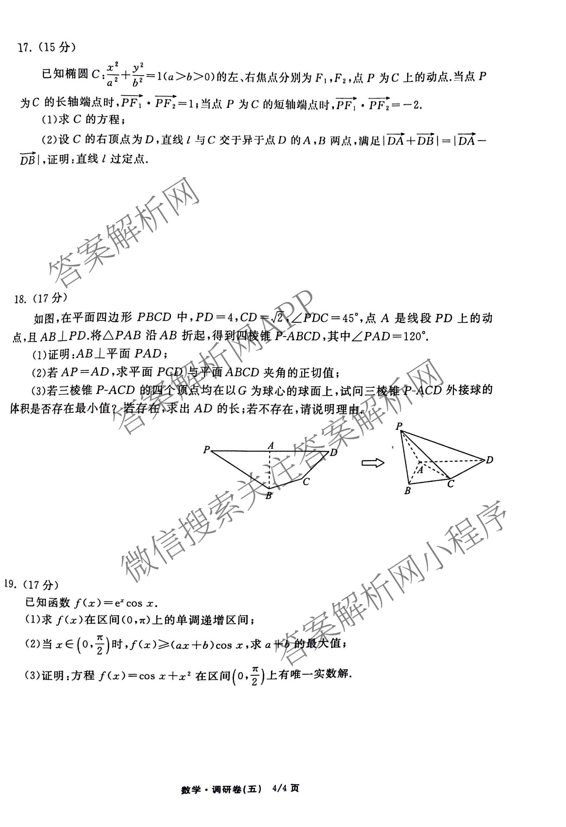 天舟高考(衡中同卷)2026年普通高等学校招生全国统一考试模拟调研卷(五)5数学(无字母)试题