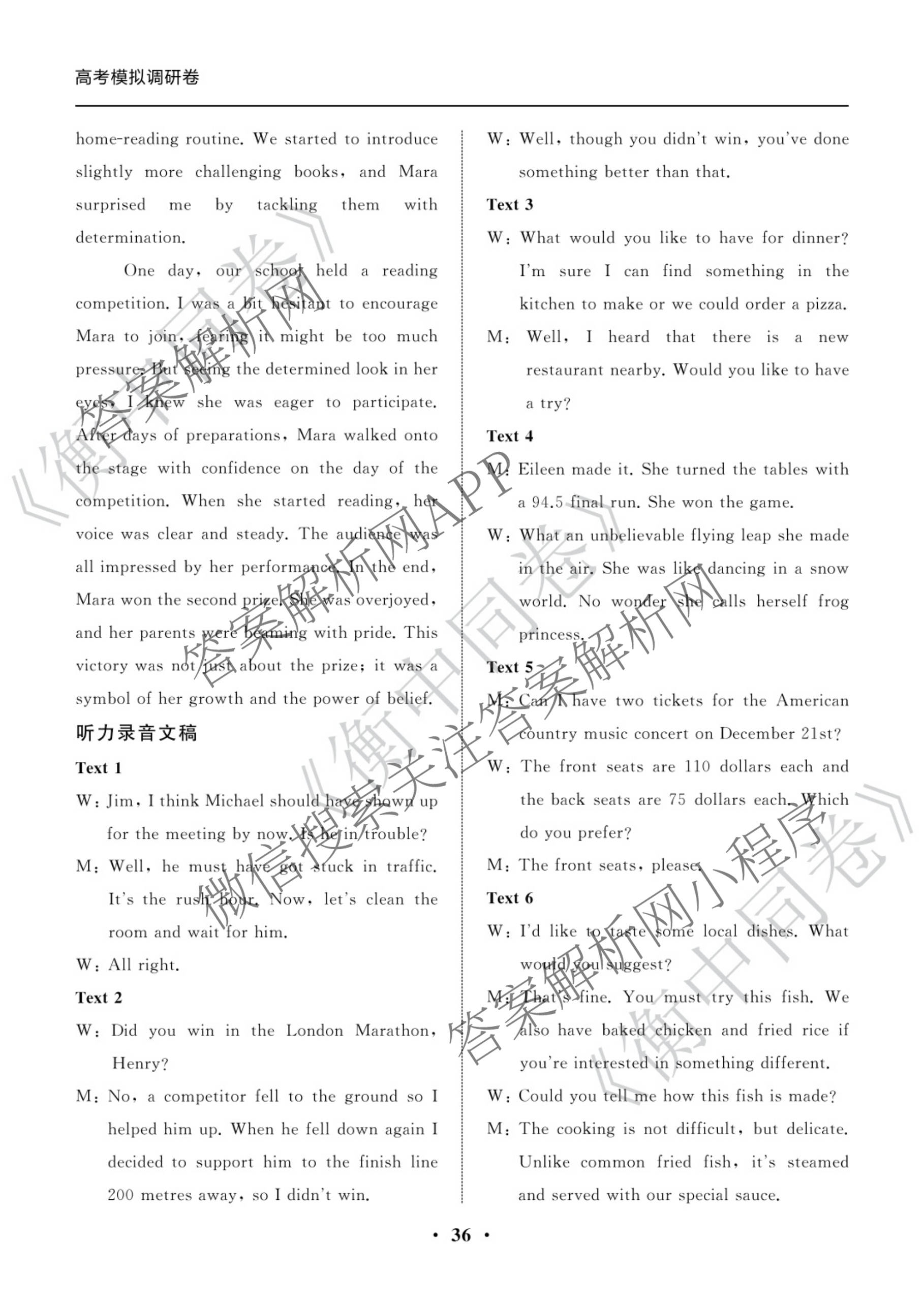 - 天舟高考[衡中同卷]2026年普通高等学校招生全国统一考试模拟调研卷(五)5英语(B)答案