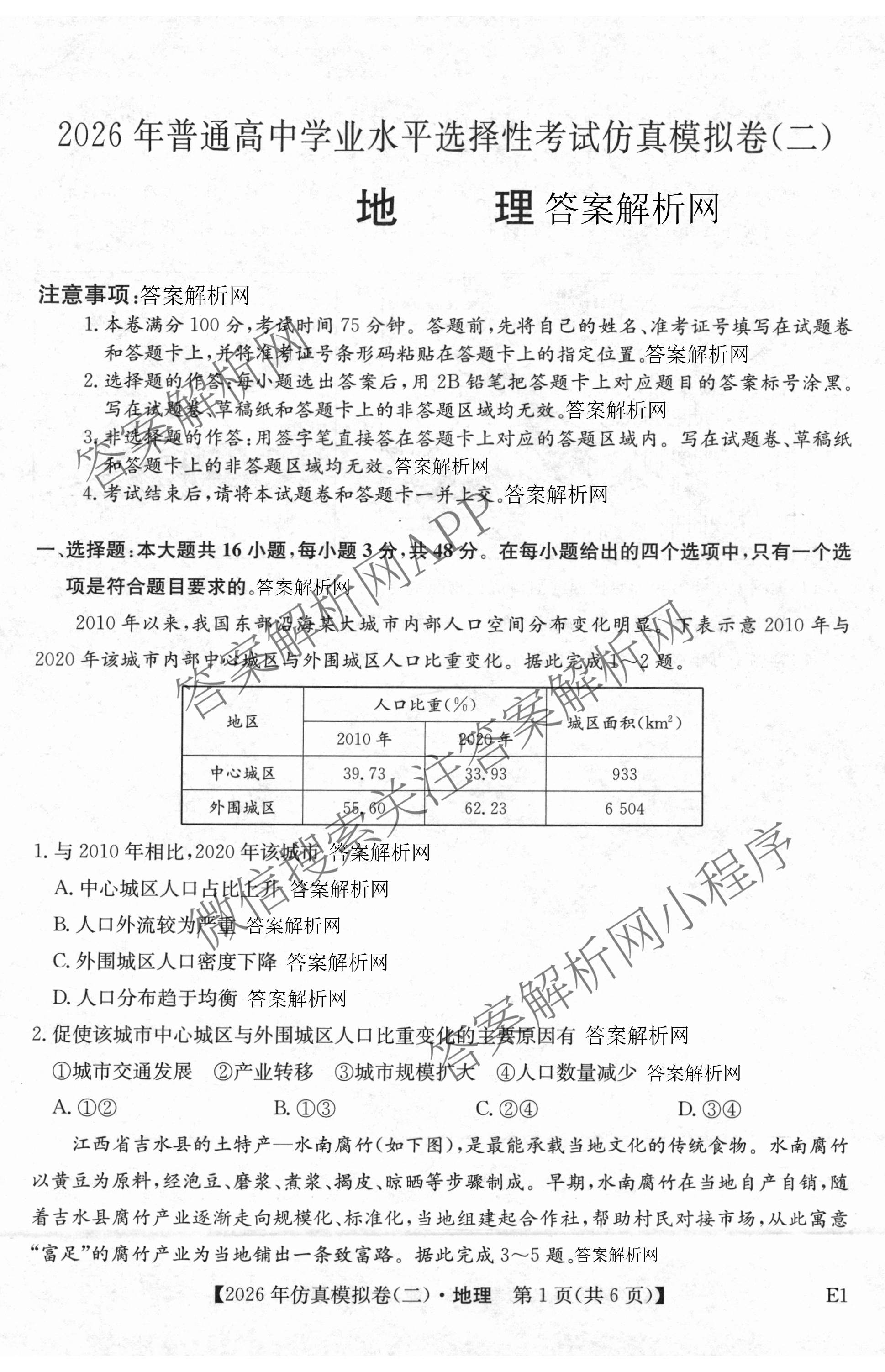2026年普通高中学业水平选择性考试仿真模拟卷(二)2地理(E1)试题,目前衡水金卷先享题答案网已经汇总了2026年普通高中学业水平选择性考试仿真模拟卷(二)2地理(E1)试题的各科答案和试卷,获取更多全国高考仿真模拟卷答案解析,请在关注本站。