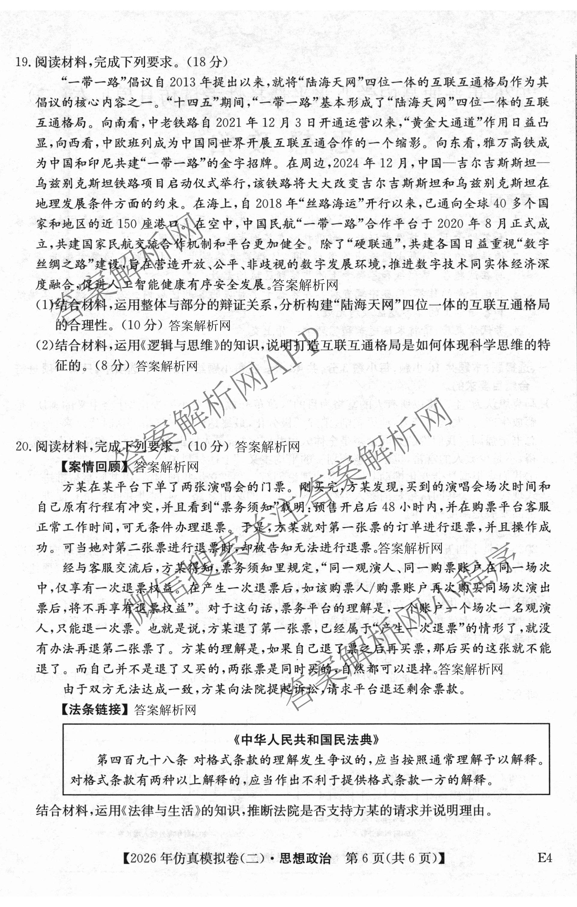 - 2026年普通高中学业水平选择性考试仿真模拟卷(二)2政治(E4)答案