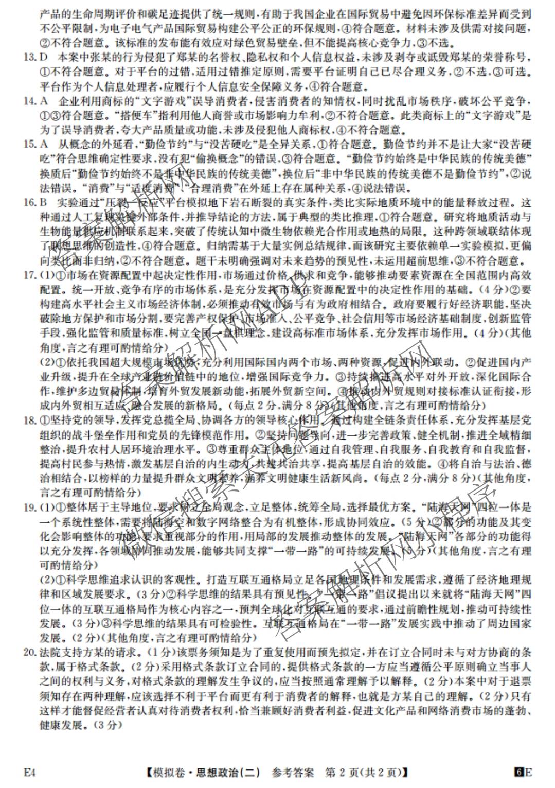 - 2026年普通高中学业水平选择性考试仿真模拟卷(二)2政治(E4)答案