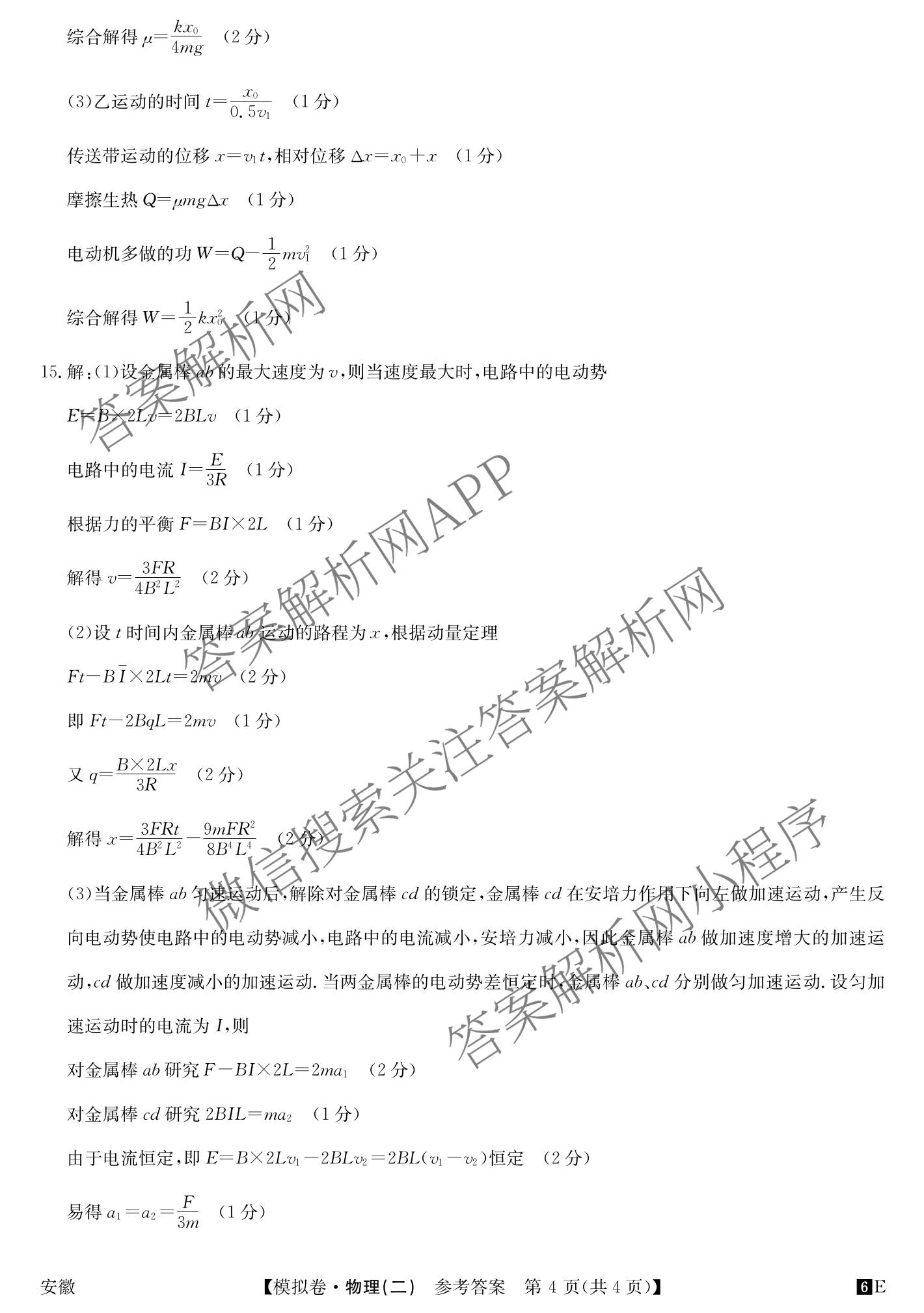 - 2026年普通高中学业水平选择性考试仿真模拟卷(二)2物理(安徽)答案