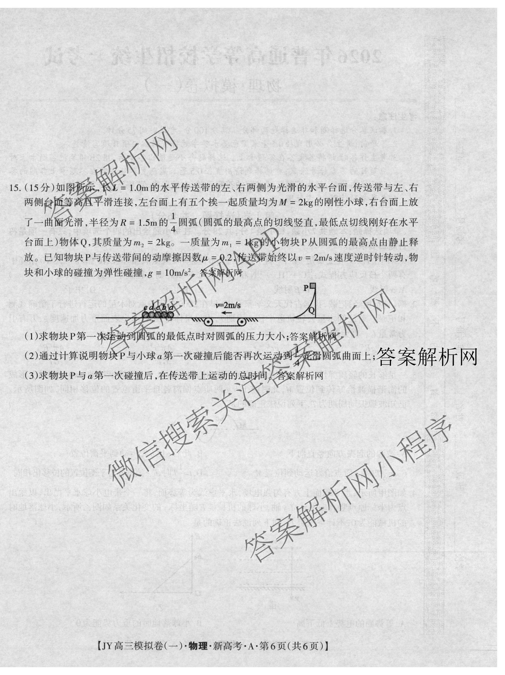 2026年普通高等学校招生统一考试·JY高三模拟卷(一)物理(新高考·A)试题,目前衡水金卷先享题答案网已经汇总了2026年普通高等学校招生统一考试·JY高三模拟卷(一)物理(新高考·A)试题的各科答案和试卷,获取更多金优JY答案解析,请在关注本站。