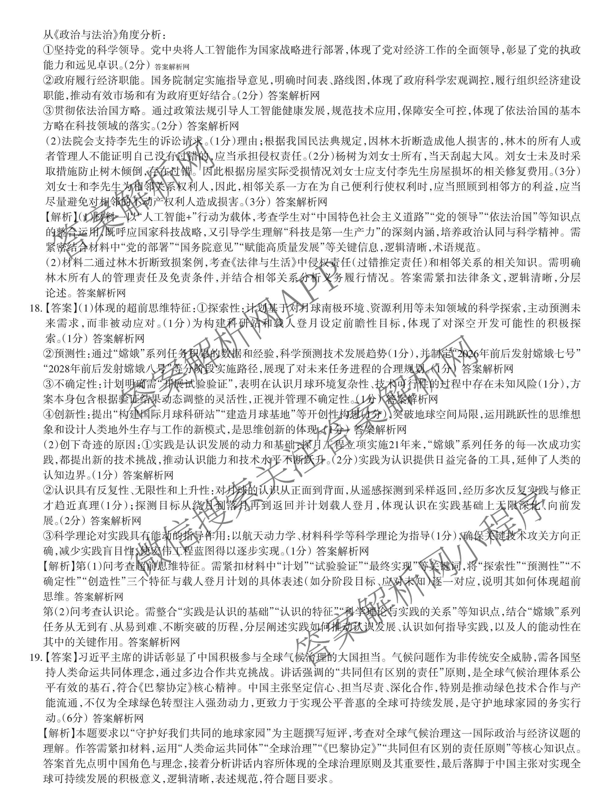 - 2026年普通高等学校招生统一考试·JY(高三)模拟卷(一)政治(新高考·D)答案