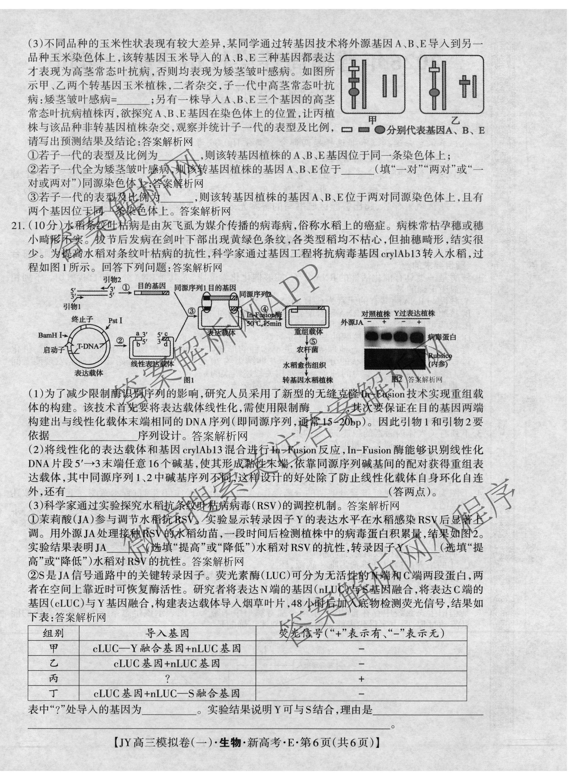 - 2026年普通高等学校招生统一考试JY[高三]模拟卷(一)生物(新高考E)答案