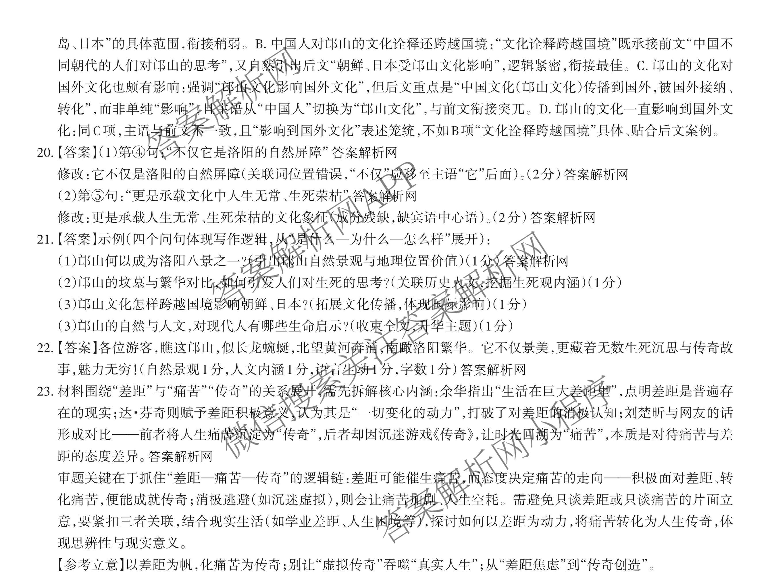 - [高三]2026年普通高等学校招生统一考试·JY模拟卷(一)语文(A区专用)答案