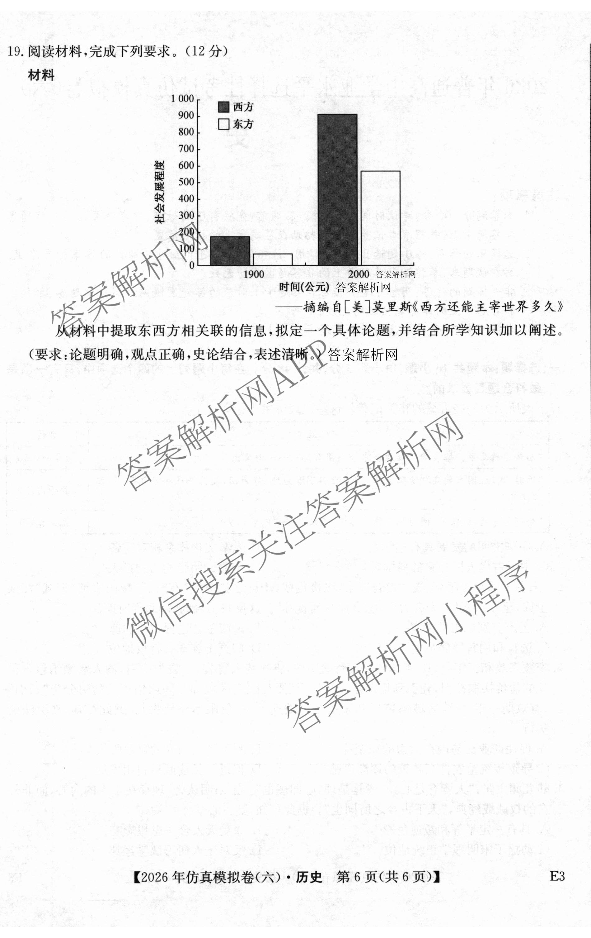- 高三2026年普通高中学业水平选择性考试仿真模拟卷(六)6历史(E3)答案