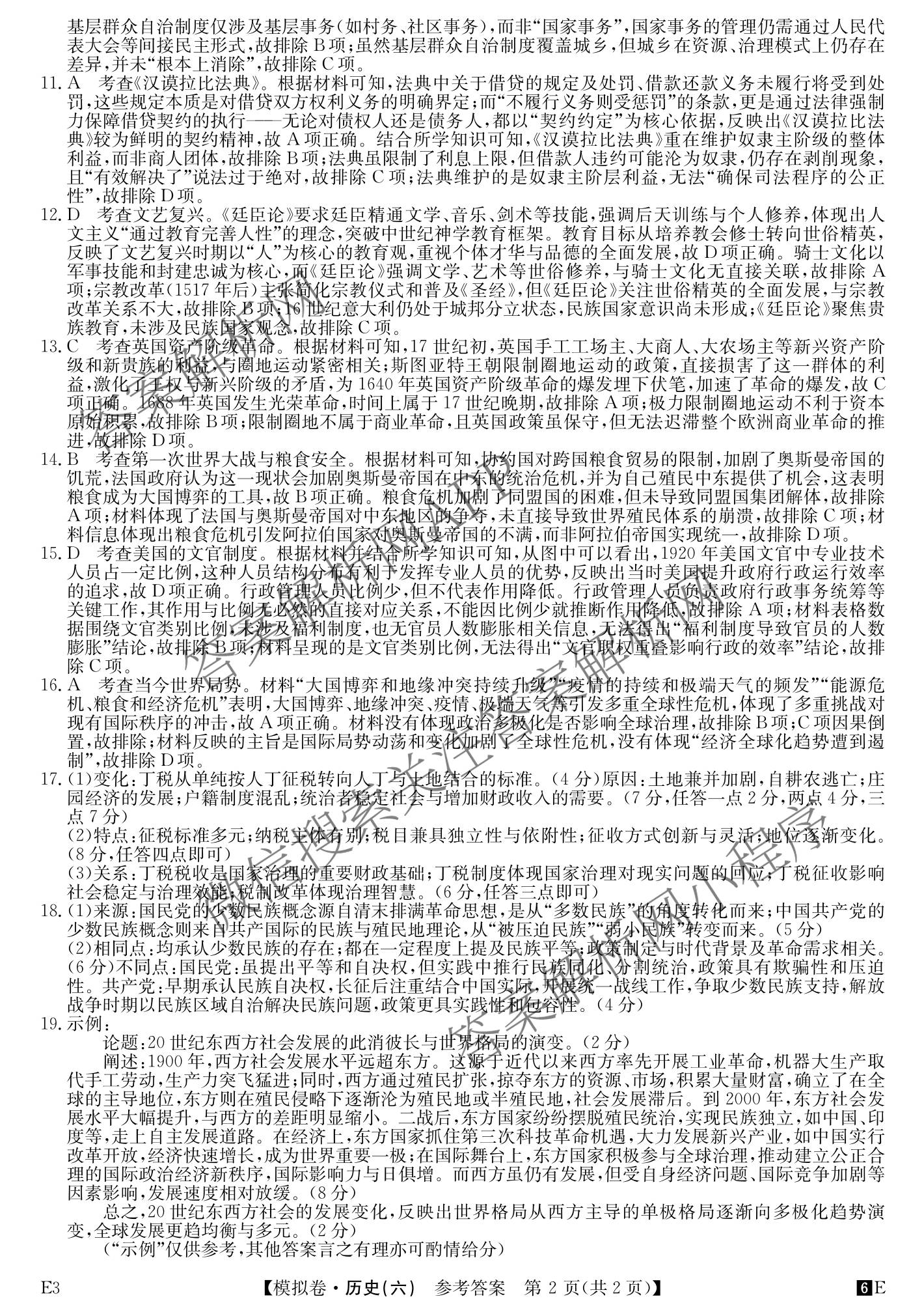 - 高三2026年普通高中学业水平选择性考试仿真模拟卷(六)6历史(E2)答案