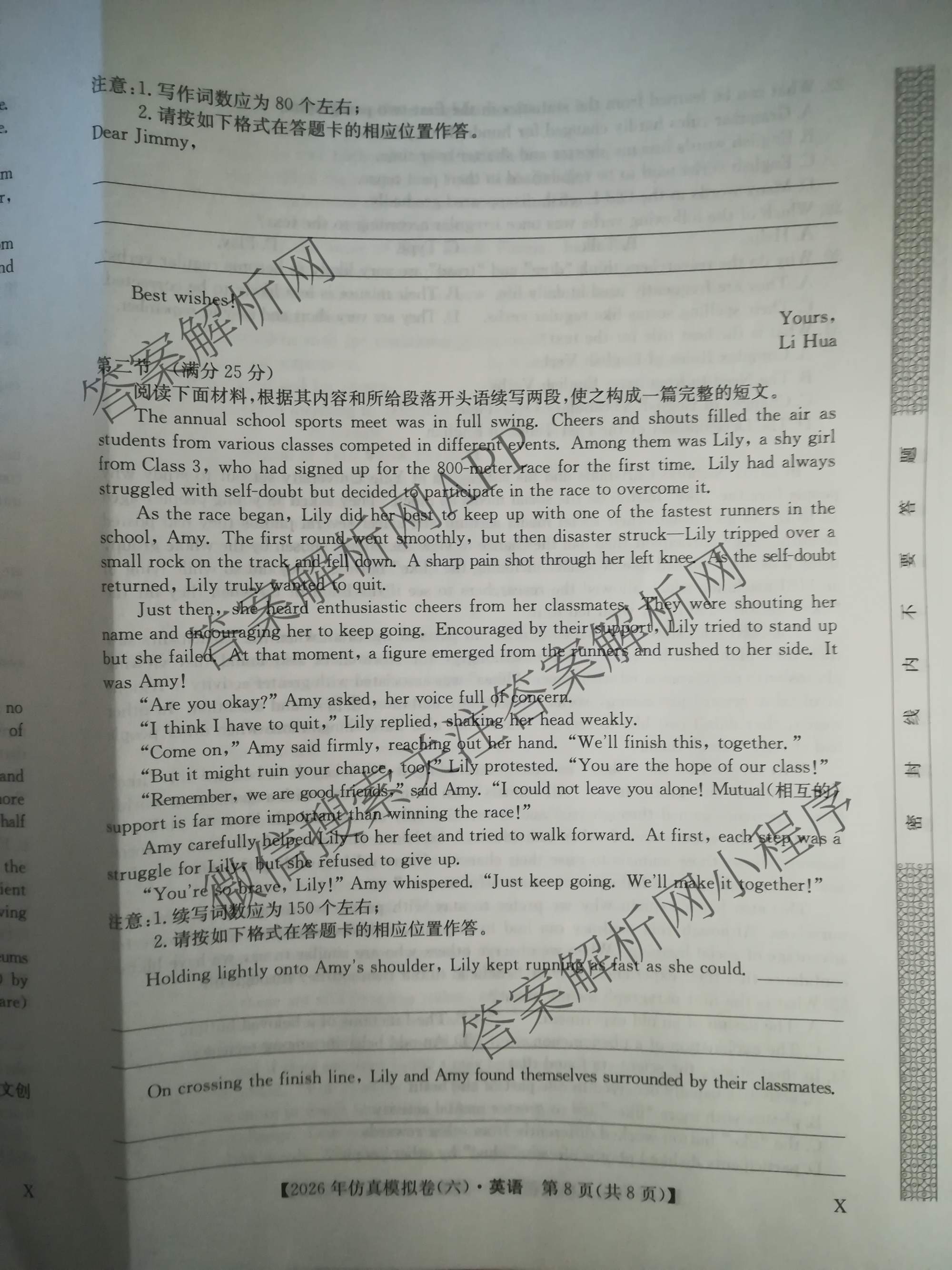 2026年全国高考仿真模拟卷(六)6英语(X)试题,目前衡水金卷先享题答案网已经汇总了2026年全国高考仿真模拟卷(六)6英语(X)试题的各科答案和试卷,获取更多全国高考仿真模拟卷答案解析,请在关注本站。