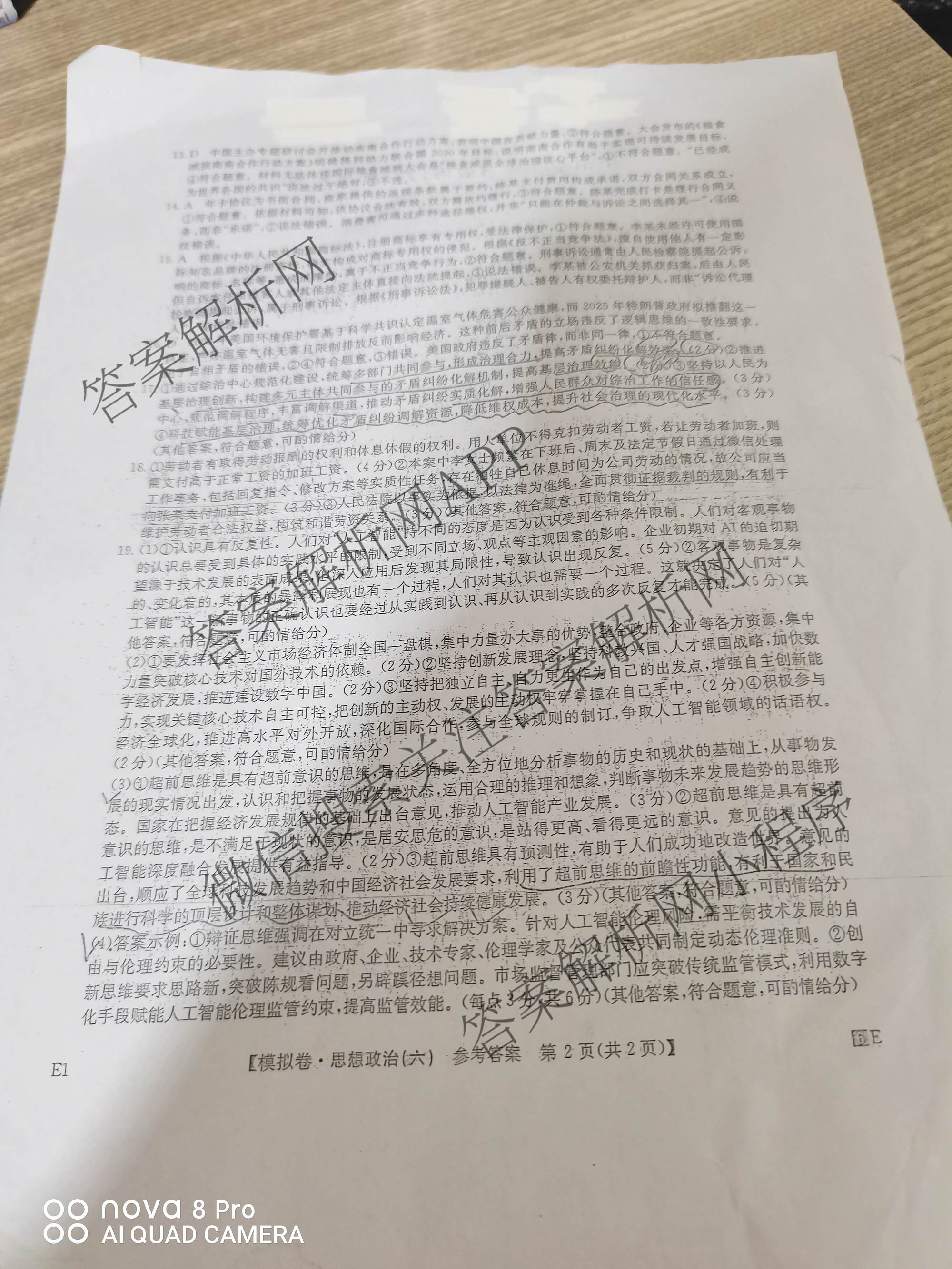 - [高三]2026年普通高中学业水平选择性考试仿真模拟卷(六)6政治(E2)答案