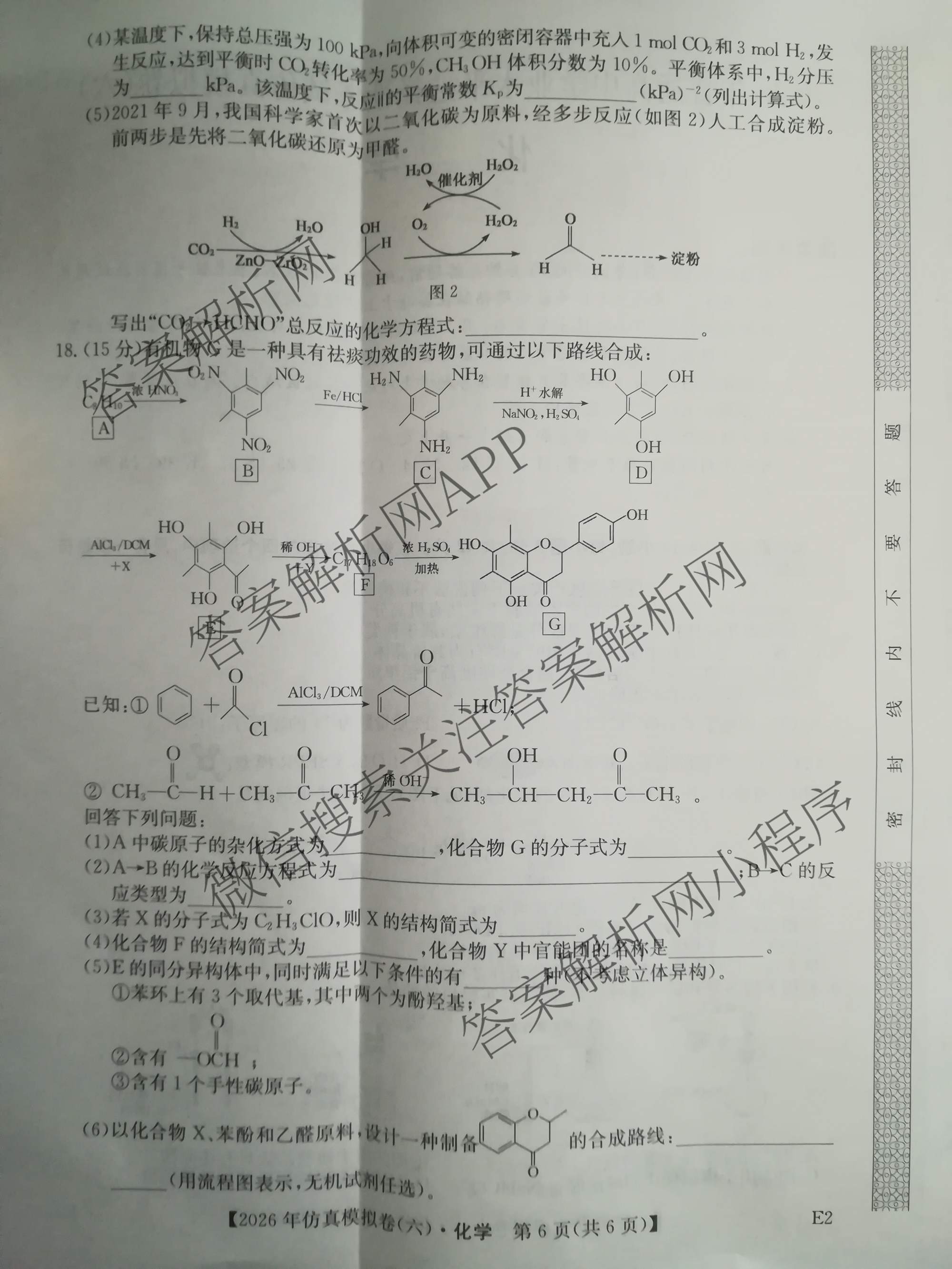 2026年普通高中学业水平选择性考试仿真模拟卷(六)6化学(E2)试题,目前衡水金卷先享题答案网已经汇总了2026年普通高中学业水平选择性考试仿真模拟卷(六)6化学(E2)试题的各科答案和试卷,获取更多全国高考仿真模拟卷答案解析,请在关注本站。