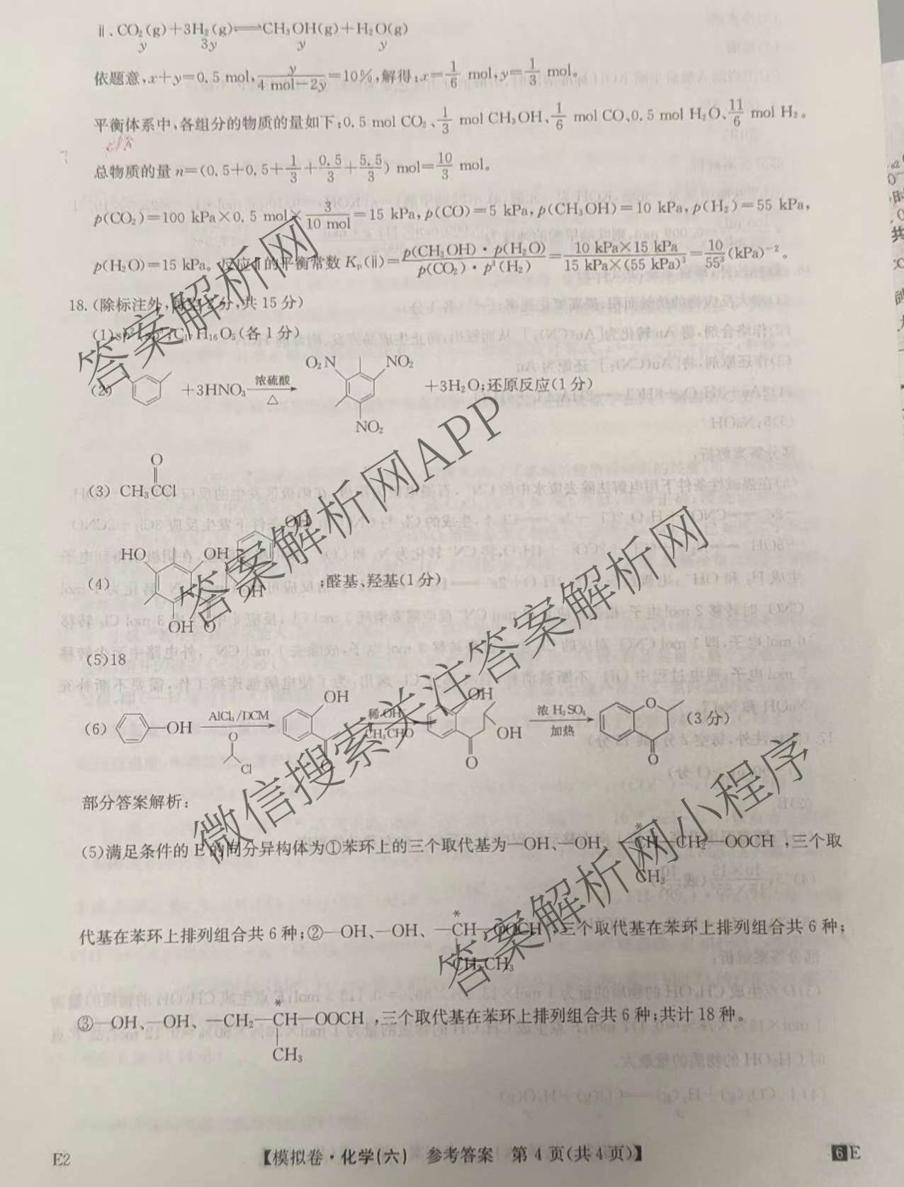 - 2026年普通高中学业水平选择性考试仿真模拟卷(六)6化学(E2)答案