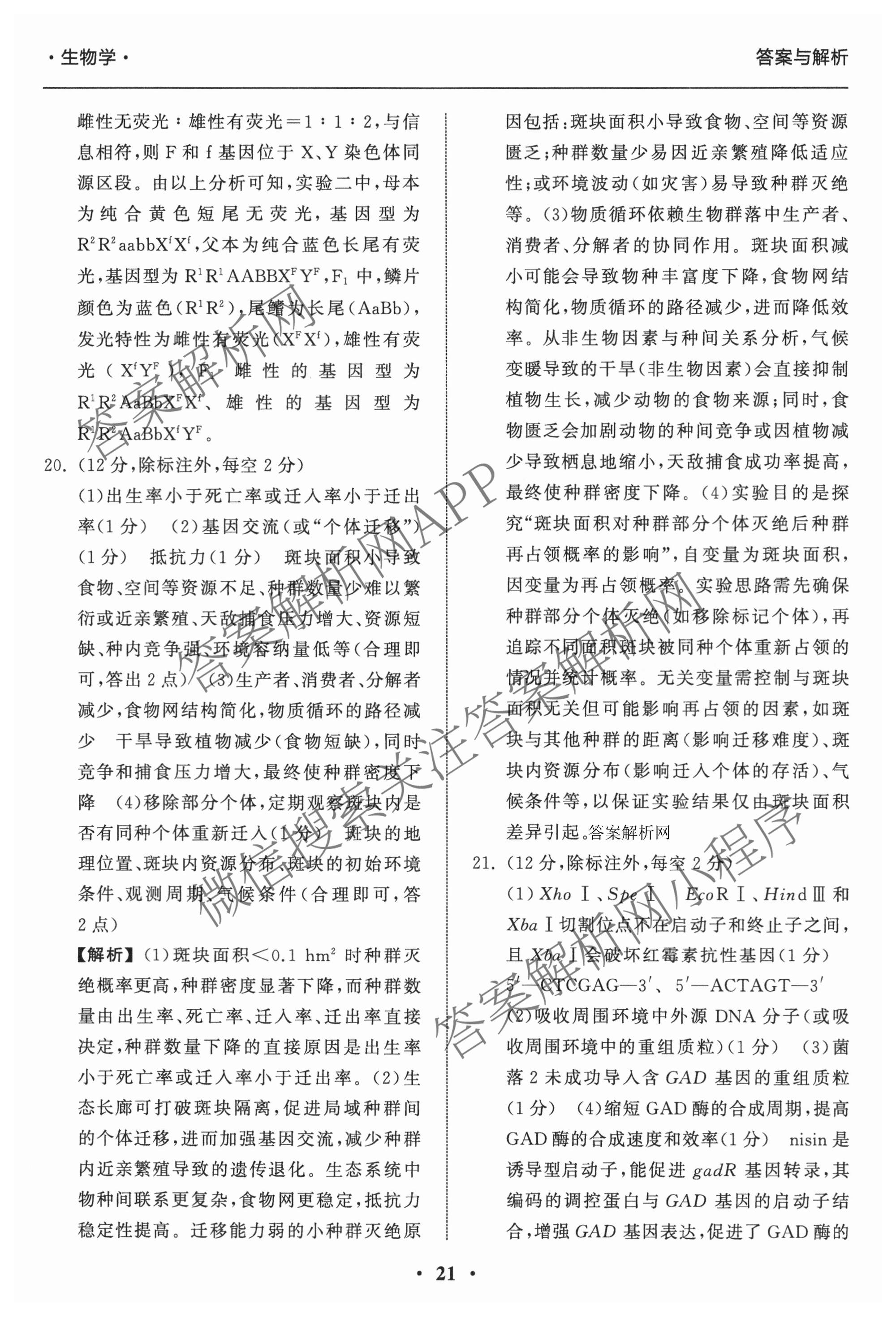 - 天舟高考[衡中同卷]2026年普通高中学业水平选择性考试模拟调研卷(四)4生物(WY)答案