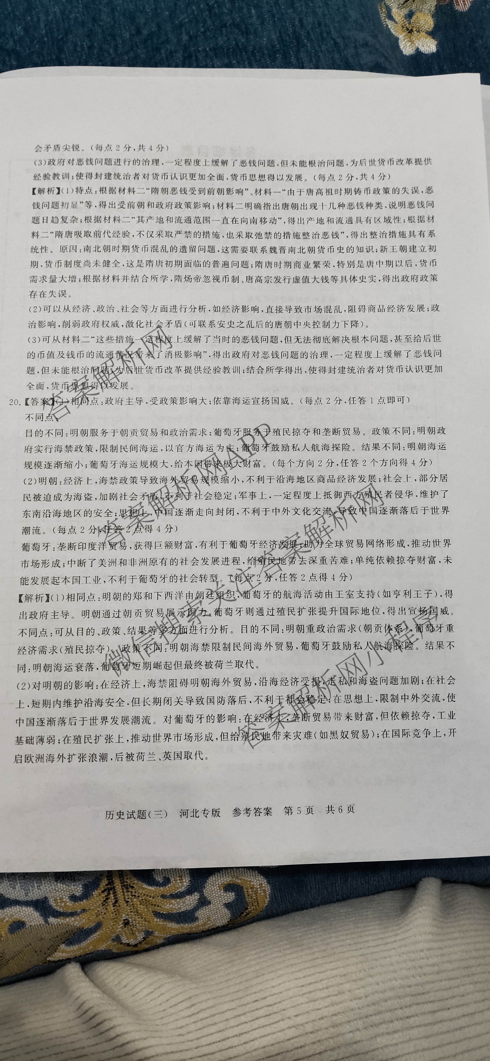 - 冲刺新高考2026届选择考仿真模拟卷(T8)(三)3历史(河北专版)答案