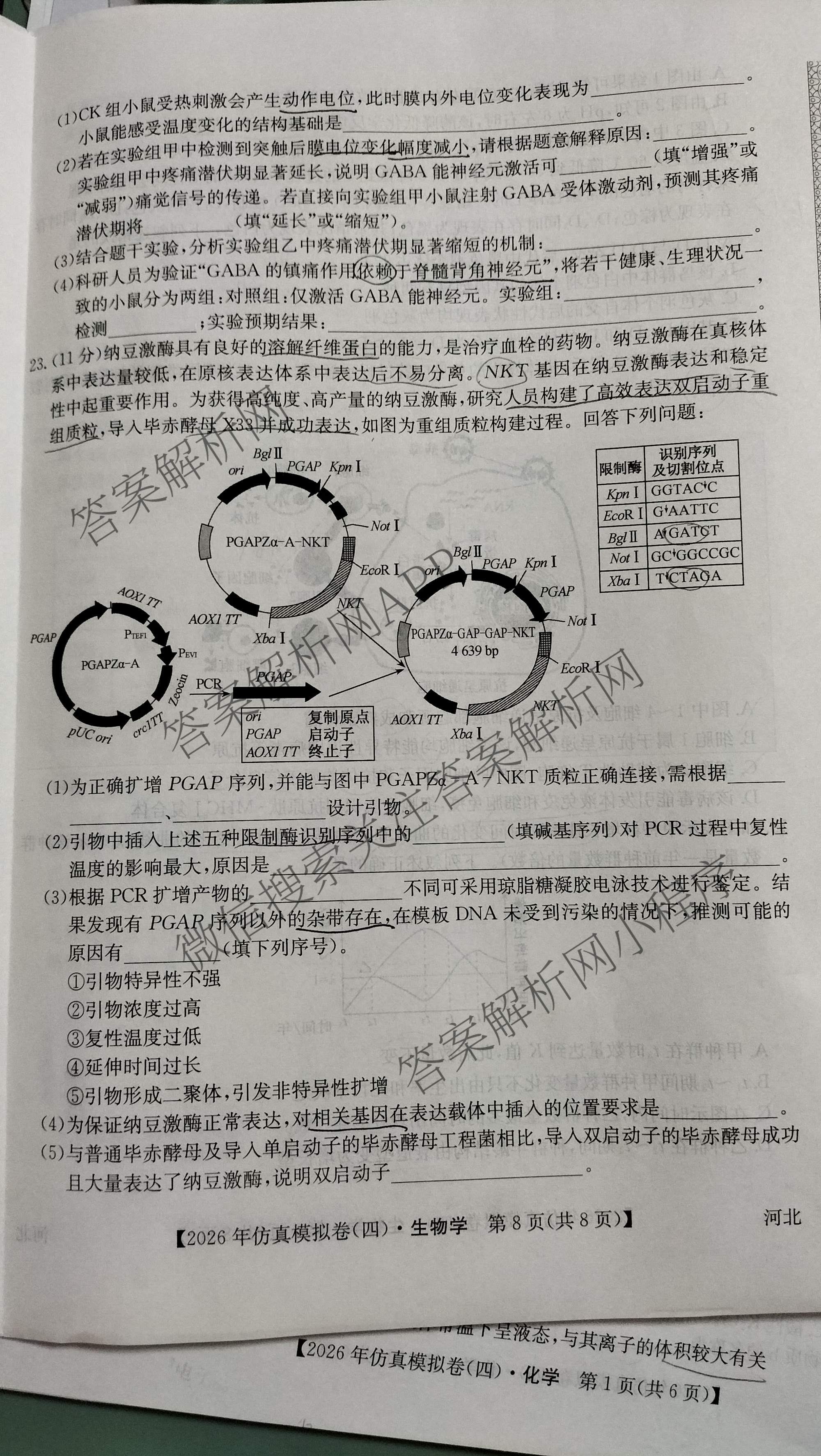 2026年普通高中学业水平选择性考试仿真模拟卷(四)4生物(河北)试题,目前衡水金卷先享题答案网已经汇总了2026年普通高中学业水平选择性考试仿真模拟卷(四)4生物(河北)试题的各科答案和试卷,获取更多全国高考仿真模拟卷答案解析,请在关注本站。