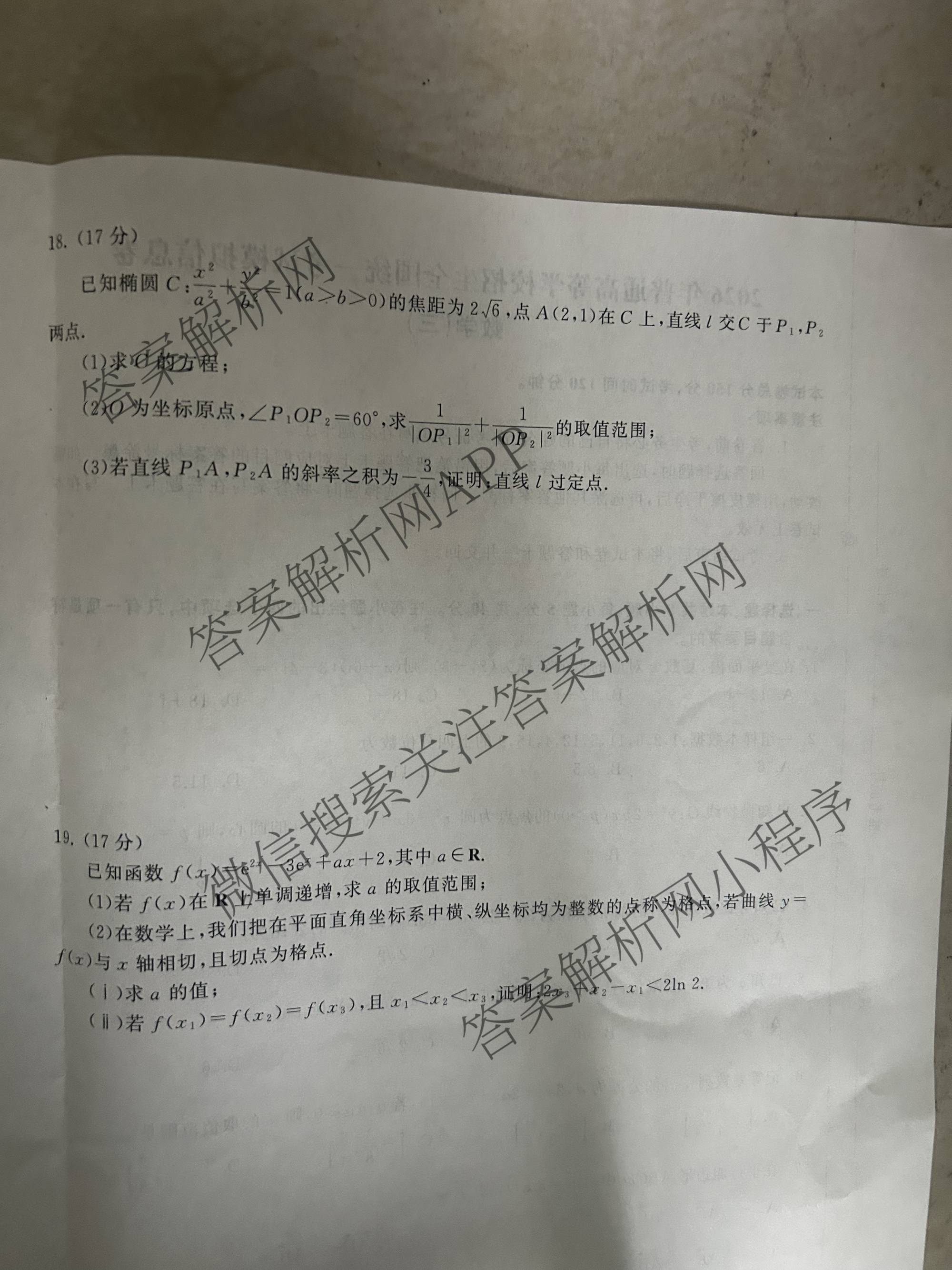 - 天舟高考[衡中同卷]2026年普通高等学校招生全国统一考试模拟信息卷(三)3数学(通用版)试题