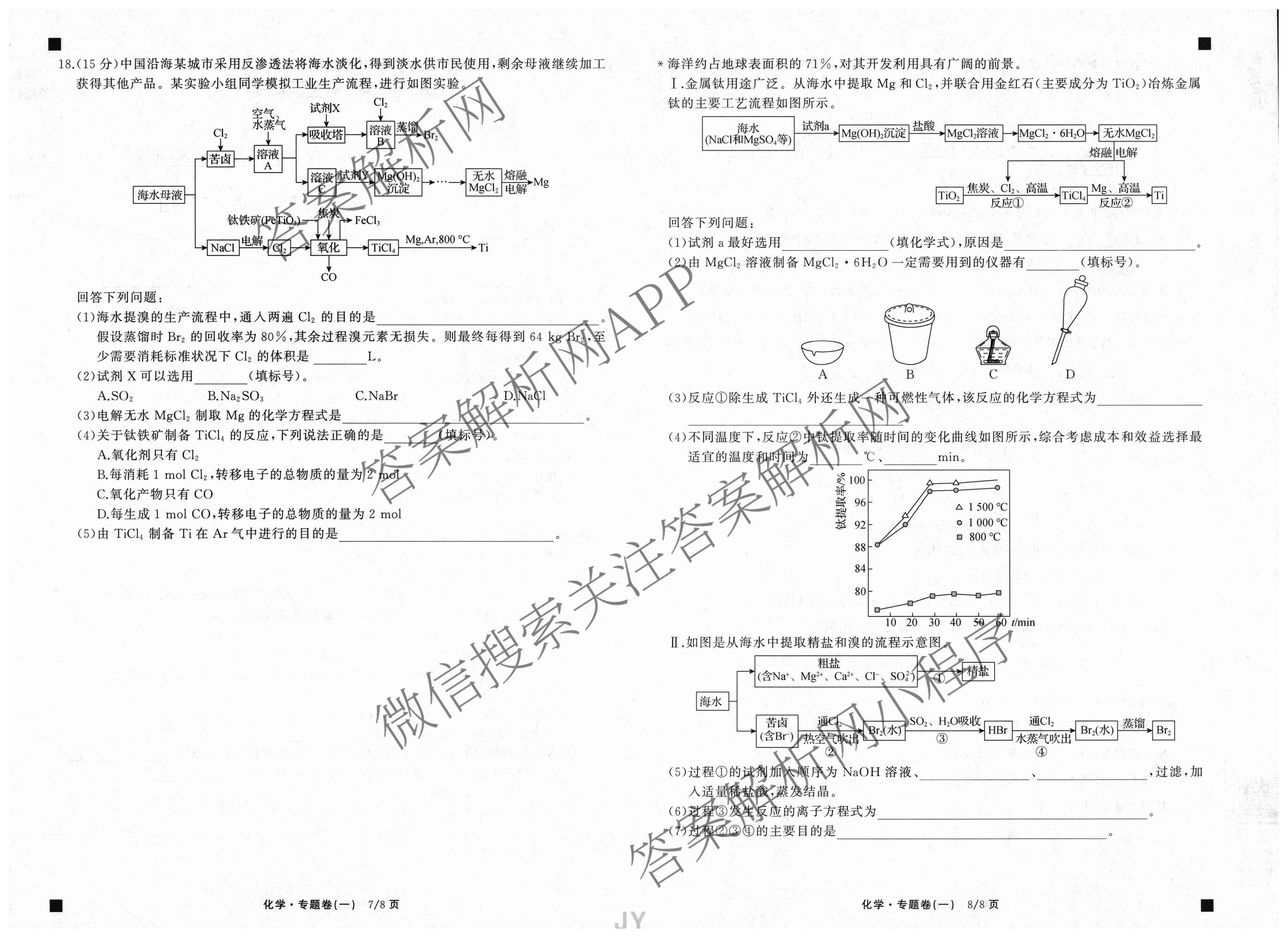 衡中同卷·2025-2026学年度高考总复习专题卷 化学(JY)(一)1试题,目前衡水金卷先享题答案网已经汇总了衡中同卷·2025-2026学年度高考总复习专题卷 化学(JY)(一)1试题的各科答案和试卷,获取更多衡中同卷答案解析,请在关注本站。