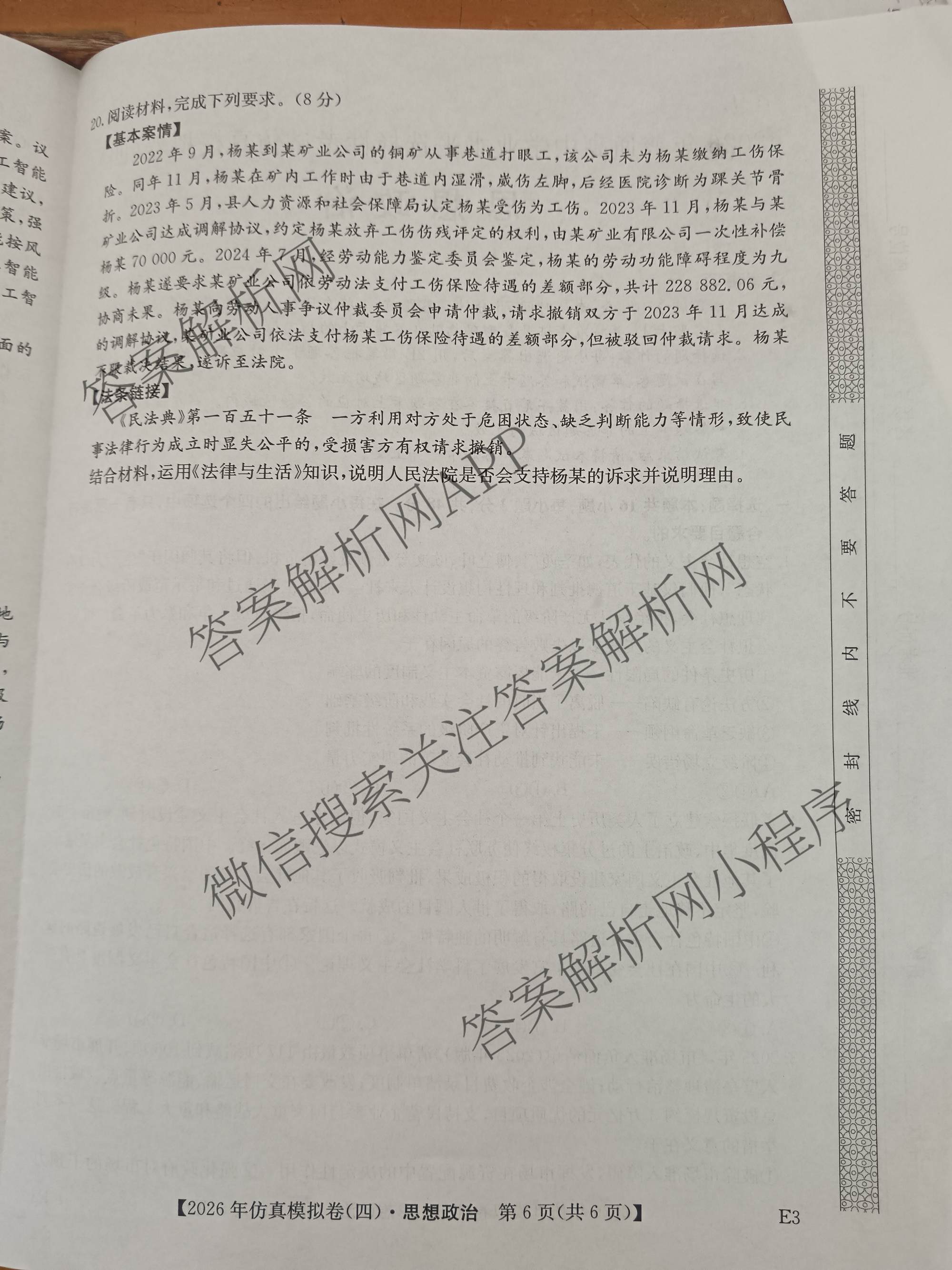 - [高三]2026年普通高中学业水平选择性考试仿真模拟卷(四)4政治(E3)试题